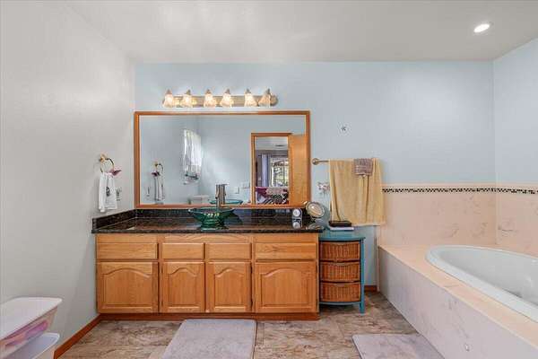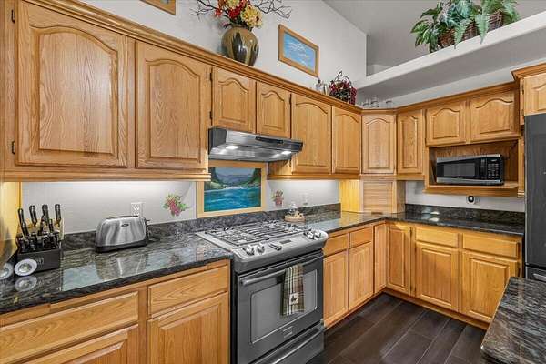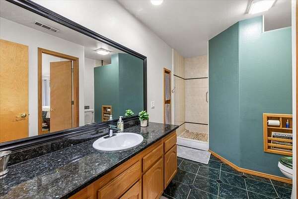 - Breakfast Bar, Ceiling Fan(s), Granite Counters, Kitchen Island, Linen Closet, Pantry, Smart Thermostat, Tile Shower, Vaulted Ceiling(s), Walk-In Closet(s)