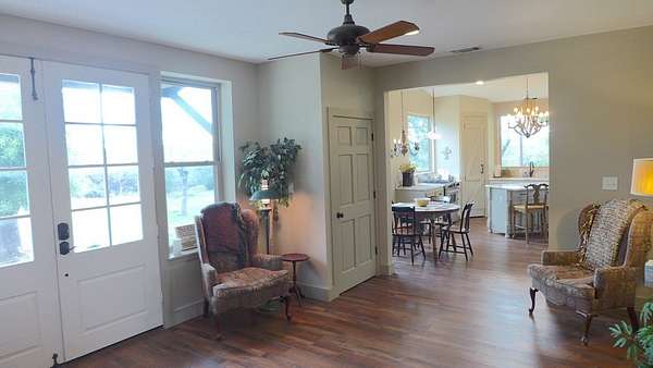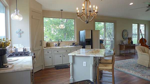 Relax and settle into this 4-bedroom, 3-bathroom home new to the market in desirable area of charming Comfort! This home offers approximately 2950 square feet of beautifully appointed living space totally renovated in 2019. Exotic quartzite and large windows in kitchen area open to living room. Dining/Living overlook a beautifully groomed back yard full of wildlife. It feels private (backing up to a 1000 acre ranch) and would also be suitable for horses. Down stairs are living, kitchen, dining, entry, laundry, mud room, large full bath, and a very large master bedroom and bath with private porch. 3 bedrooms and 1 bath upstairs. One bedroom up has wet bar with small refrigerator. Very comfortable floor plan. 3 separate porch/deck areas plus a concrete pad that could be used for another outbuilding. Reasonable restrictions: No mobiles/modulars, no swine, no unlicensed vehicles, no commercial applications except short term rental, plus dark sky restrictions. Plus 24x28 carport and 12x20 storage building, and back up Generator w/ 400 gal propane tank. Enjoy beautiful sunsets, starry nights and wildlife galore or spend a day each at two local wineries