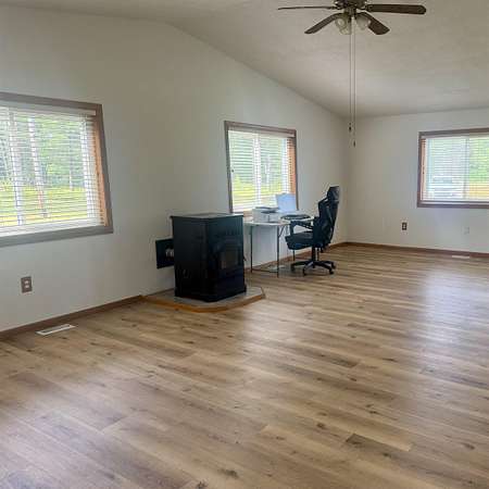 Fully remodeled ranch-style home situated on 4 secluded acres, offering the perfect combination of privacy and comfort. This 2-bedroom, 1-bath home has been thoughtfully updated throughout. Step inside to find an open and functional layout with all-new flooring, an updated kitchen with modern cabinetry, countertops, and appliances. Relax in the spacious living area featuring a fireplace for cozy nights in. The home features a brand new 5" well with excellent water pressure, a new roof, new siding, and all new PEX plumbing for peace of mind. Enjoy the outdoors with a fully fenced-in backyard, ideal for pets, kids, or entertaining. Multiple sheds provide ample storage space for tools, equipment, and recreational gear. A detached 2-car garage adds convenience and flexibility. Located in the heart of Clare County's trail systems, this property offers direct access to miles of ATV, biking, and snowmobile trails, perfect for the outdoor enthusiast. Wildlife sightings are frequent, and the quiet setting is ideal for year-round living or a weekend getaway. Additional features include central A/C, ceiling fans, updated fixtures, and plenty of off-road parking. Located in Summerfield Township with easy access to Harrison amenities, lakes, and public land. Move-in ready and low-maintenance--this home is a must-see!