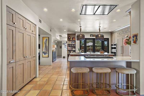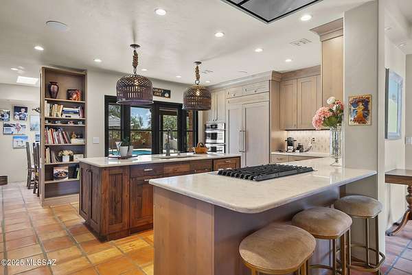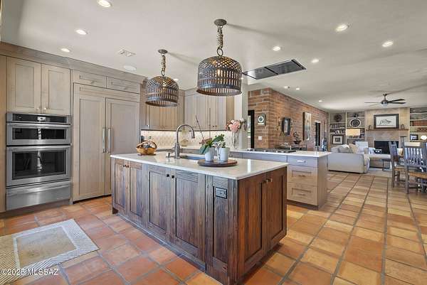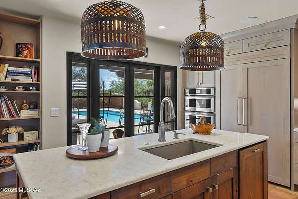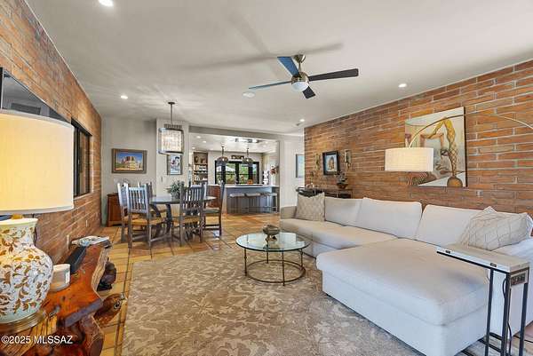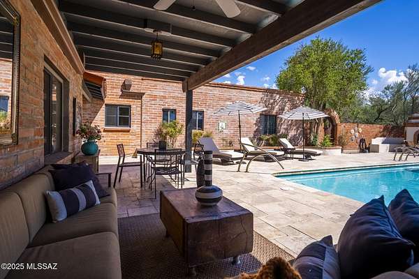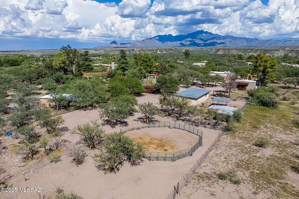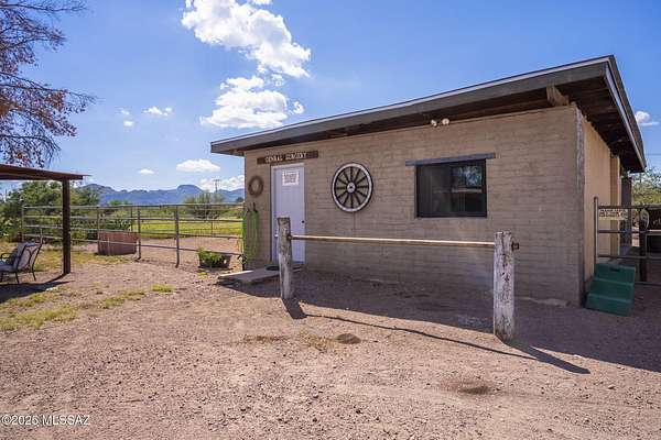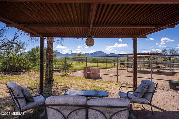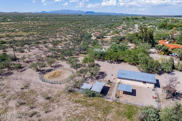 Perched on 2.14 idyllic acres, this spectacular equestrian retreat with casita offers sweeping Santa Rita and Tumacacori mountain vistas and the freedom you're looking for. With no HOA constraints, it's a rare opportunity to own your own slice of open land, horse facilities, private pool, panoramic views, plus built-in investment potential. Round pen, stalls and tack room are waiting for your horses. Multiple gathering areas provide plenty of room for daily living or entertaining. Thoughtful layout connects elegant interior living spaces to the outdoors, where you'll find a sparkling pool surrounded by native desert plantings that create an oasis of relaxation. Charming casita is currently listed on Airbnb but can also be used as a guest house or multi-gen living space.