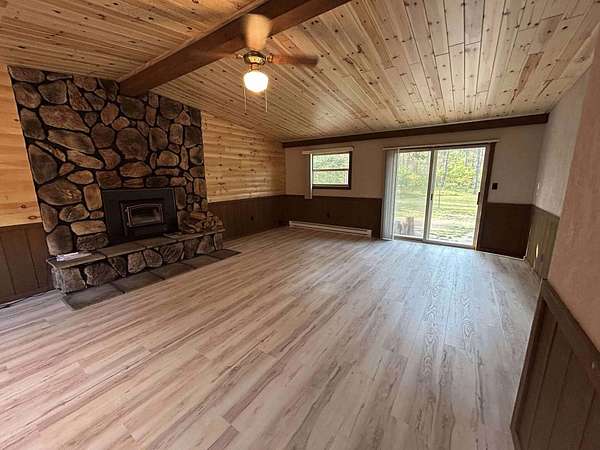 HOME ON 10 SQUARE ACRES- 3 bedrooms, 1 bath with many updates nestled in a private location, with no visible neighbors on 10 square acres bordering federal land. Knotty pine vaulted ceiling, new walk-in shower, new steel roof, with new two car garage. garden area, fenced in back yard, and landscaped bring a lot of charm to this secluded paradise. 1 mile from the AuSable River and in between Mio and Fairview. Located on a private dead end road. A-3000 $ 222,500