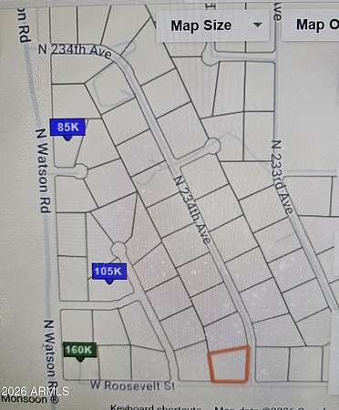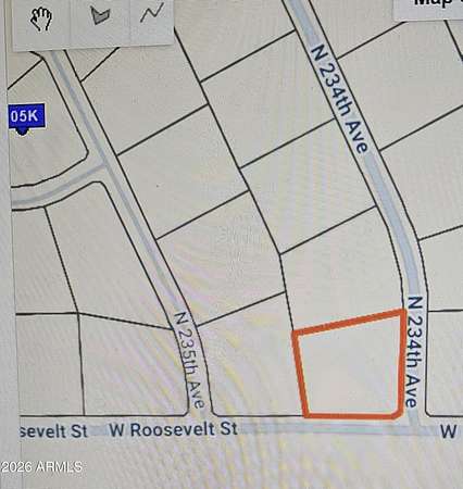Exit Watson Rd from I-17; north on Watson Rd. right (E) on 234th Ave; 234th Ave turns south to property at end of road (Roosevelt St); lot is on NW corner of 234th Ave & Roosevelt St.