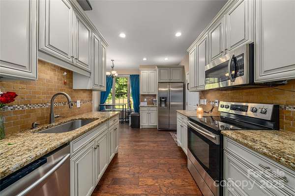 Welcome to 2341 Enola Road. This well-maintained two-story home with a walk-out basement sits on 6.76 acres of unrestricted, usable land, offering privacy and space just minutes from town. Located only 7 minutes south of I-40 in Morganton, the property provides convenient access to daily essentials-just 10 minutes to Lowe's, 15 minutes to Ingles, and only a few minutes from Chick-fil-A. South Mountain State Park is also just 15 minutes away, ideal for outdoor recreation. The home offers approximately 2,100 square feet of living space with 3 bedrooms and 2.5 bathrooms. The interior features hardwood and tile flooring, 9-foot ceilings, and granite countertops in both the kitchen and bathrooms. Natural light fills the home, and the layout supports comfortable everyday living. Outdoor spaces include a large front porch, a covered back porch, and a dedicated fire pit area-perfect for enjoying the peaceful setting. The property is beautifully landscaped with over 50 rose bushes and a variety of other flowers. A small creek flows through the lower part of the land, and natural springs add to the charm. There is also a small pond area in the front yard that could easily be expanded or enhanced, as it receives year-round water flow. Additional features include an attached two-car garage on the main level and a lower-level one-car garage with interior access, ideal for storage, a workshop, or additional parking. The home is accessed via a state-maintained road and is connected to city water, underground power, wired internet, and a septic system. This property combines a quiet, natural setting with the convenience of nearby amenities, making it a versatile option for those looking for space, functionality, and a peaceful place to call home.