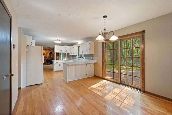 Nestled on a picturesque, wooded corner lot, this well-maintained 5BR/3BA two-story home exudes country charm. The fantastic curb appeal & relaxing front porch welcome you into the inviting interior. The spacious living rm features a wood-burning frplc w/brick surround, flowing seamlessly into the formal dining rm w/built-in corner hutches. The informal dining area opens to a deck overlooking the backyard & tranquil pond, w/hdwd floors extending into the kitchen equipped w/a breakfast bar & ample cabinetry. Just off the kitchen is a lg family rm w/a brick feature wall including a built-in wagon wheel mirror and a cozy wood stove + a walkout to the patio. Upstairs, you'll find 4 good-sized BRs & a full bath, while the finished LL offers a 5th BR, 3/4 bath w/dual sinks, recreational space, and storage. Additional highlights include a 4-car garage, 30x45 pole building w/cement slab, & a unique garden shed - providing abundant storage solutions. This charming home is a must-see. Schedule your private showing today to experience the country feel in the heart of Princeton.
