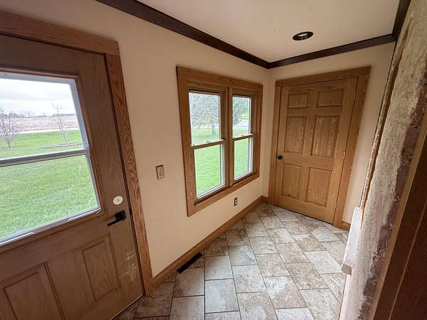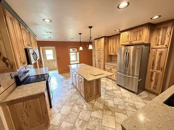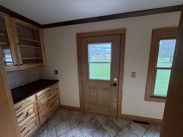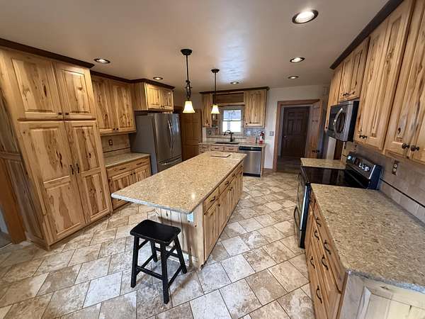 20-acre hobby farm with approx. 12 tillable acres, ideal for farming, recreation, or a horse setup. Farmhouse offers 4 BRs (2 main, 2 upper). Upper BRs renovated to studs with new insulation, drywall, and 2 new front windows. Kitchen features granite counters, island seating for 4, and Amish-made hickory cabinets. Main 8x8 bath doubles as laundry. Interior includes tile & carpet, 6-panel doors, and LED/recessed lighting. Outbuildings include 4 silage bunkers, large barn w/52 stalls, tiled solar barn, main barn w/spancrete floor, and machine shed with heated concrete-floor area--great for garage, shop, or storage. Great potential horse property!