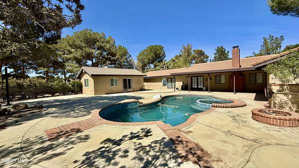 Welcome to this exceptional West Palmdale ranch-style property situated on 2.41+/- usable acres! This 3-bedroom, 2-bath home offers approximately 1,868 sq ft of original living space, plus a converted 4-car garage now serving as a spacious game room/man cave/family room--ideal for entertaining or extended living.This property truly stands out with its abundance of mature trees and fruit trees--an extremely rare find in the area--providing natural shade, privacy, and a peaceful, park-like setting. The outdoor space also features a sparkling pool and a beautiful pool house complete with its own bathroom, perfect for guests or potential additional living space.Aerial views highlight the expansive and functional land, offering plenty of room for animals, recreation, or future improvements. Fully equipped for rural living, the property includes a barn, custom chicken coops, and designated pig/cow pens.With space, versatility, and unique natural surroundings, this property offers a rare opportunity to enjoy a private ranch lifestyle while still being conveniently close to city amenities.