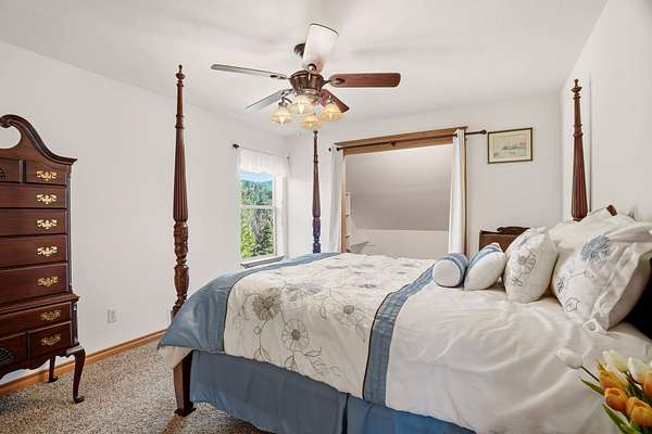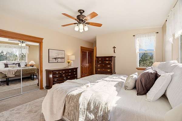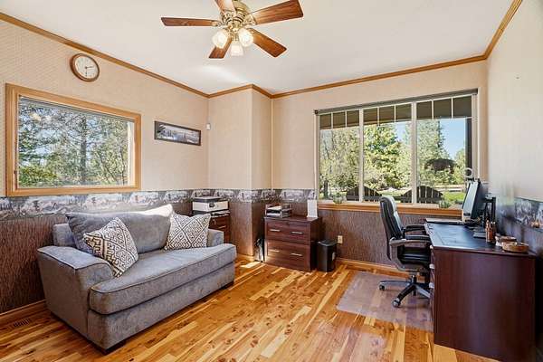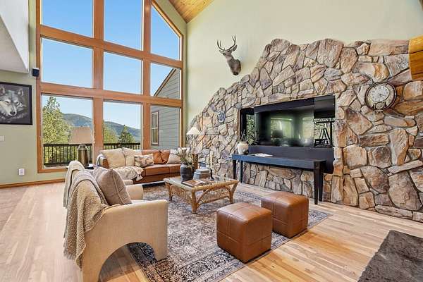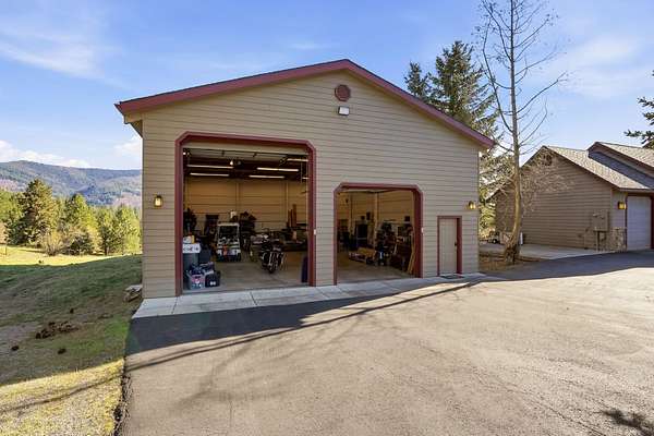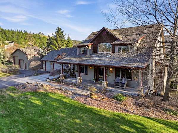 Gorgeous View home on 8 acres located on a beautiful private hillside just 10 minutes from Liberty Lake, this serene acreage retreat offers the perfect blend of nature and convenience. The PNW dream SHOP!!! Enjoy peaceful forest surroundings, wildlife, and sunset views over Mica Peak, with a soothing waterfall feature off the back decks. Inside, the home features a bright open floor plan, expansive windows, and a chef's kitchen designed for gathering. Recent updates include a new roof, heat pump, and generator (2022) for year-round comfort. The impressive 48x36 shop includes two bays, an RV door, and 30-amp hookup - ideal for all your PNW toys. Entertain with ease in the lower-level with wet bar with a vibe, theater room, and covered patio. A rare opportunity for privacy, space, and modern living just minutes from town and the lake. Primary suite on the main level, with additional craft/hobby (or huge pantry off kitchen) room and beautiful office!