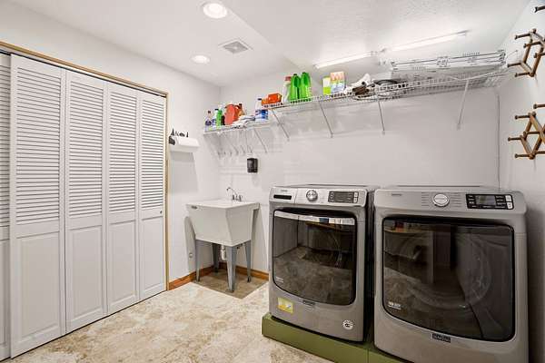 - Dishwasher, Disposal, Double Oven, Dryer, Hard Surface Counters, Indoor Grill, Microwave, Refrigerator, Washer, Water Softener