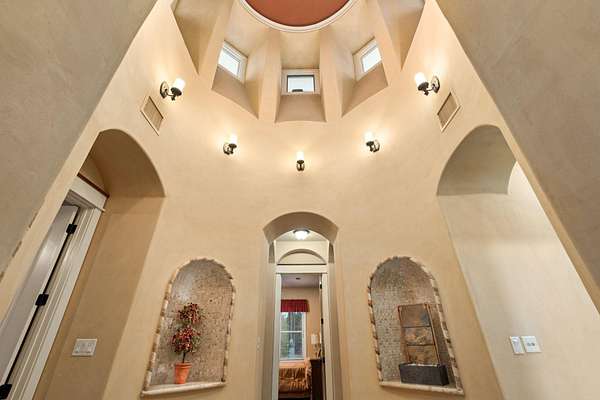Experience luxurious country living in this custom Barley & Pfeiffer masterpiece situated on a private 5.09-acre lot in the gated Paleface Ranch community. The main residence offers 3,862 sq ft with 4 bedrooms, 3 bathrooms, a media room, and an office. Custom deluxe touches include Patagonian Redwood and travertine floors throughout and a stunning rotunda. The chef's kitchen is equipped with high-end appliances including a Viking triple gas range with double oven and proofing oven, a built-in Gaggenau convection oven and steam oven, a built-in Viking refrigerator, an Asko dishwasher, and a Kitchen-Aid trash compactor. The kitchen also offers a massive granite island, outstanding counter and cabinet space, and an adjacent dining area with a double-sided fireplace and built-in wine storage and a Viking wine refrigerator. The primary retreat includes a spa-like bathroom with a walk-in shower, a jetted tub, and a massive custom walk-in closet. Outdoor living spaces and features include a large screened-in porch with a stone fireplace and built-in grill, a covered patio space with a waterfall and fire pit, a fenced backyard area, and a separate fenced garden area with irrigation. The property also features a fully equipped 1,037 sq ft guest house with 1 bedroom, 1 bathroom, living and dining area, full size kitchen, and an office, along with a deck and an attached oversized RV size garage. Both homes utilize large rainwater collection systems and a private well. The home is located in the gated Paleface Ranch Community that offers a community park with boat ramp, and is only 25 minutes to Bee Cave shopping, restaurants, and amenities.