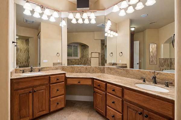 - Beamed Ceilings, Built-In Features, Ceiling Fan(s), Ceiling-High, Crown Molding, Double Vanity, Eat-In Kitchen, Entrance Foyer, Granite Counters, In-Law Floorplan, Kitchen Island, Multiple Dining Areas, Multiple Living Areas, Natural Woodwork, Pantry, Primary Bedroom On Main, Recessed Lighting, Study/Home Office, Tray Ceiling(s), Walk-In Closet(s)