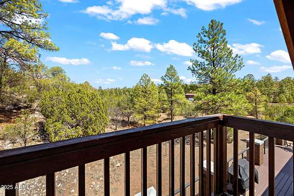 Adjoining the National Forest sits this stunning 1,664 sq. ft. cabin on 4 acres that offers two levels of comfortable mountain living with 3 bedrooms & 2 bathrooms. Updated kitchen with new cabinets & granite. New flooring, sinks, fixtures & water heater. The spacious primary suite features its own private balcony, perfect for taking in the surrounding scenery. Over 1,200 sq. ft. of deck with beautiful open-beam construction & a new roof provides the ideal outdoor living space, complete with custom metal & cable wire railing. Built with quality in mind, the home includes dual-pane windows, spray foam insulation under the crawl space floor, & insulated int. bedroom walls for added comfort. The int. showcases rustic charm with knotty pine walls & knotty aspen ceilings. Offered furnished. Property is 4.47 acres with direct access to National Forest. Large covered deck great for morning coffee and watching wildlife in the front yard. Recent updates include: New Floors throughout May 2023 New Cabinets and Granite Countertops throughout May 2023 New sinks, fixtures, door knobs May 2023 New Hot Water Heater May 2024 New Roof December 2024 New Gravel Driveway June 2023 New 8' x 20' Graceland Shed June 2023 New furnishings decor and household goods throughout May 2023 New handrail and additional safety cables on deck June 2024 Automatic float to fill water tank from well May 2023