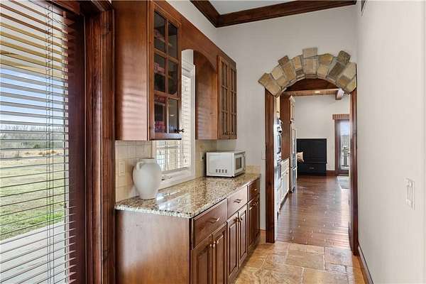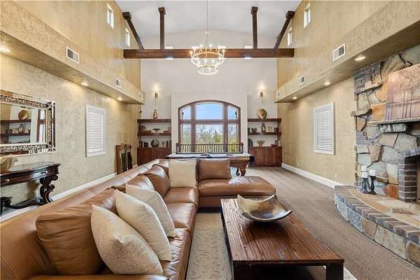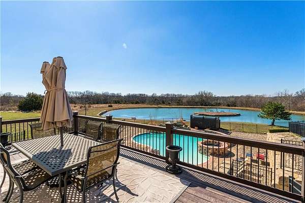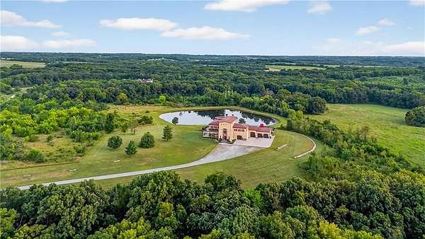 Now is the time to make this amazing opportunity a reality! This 8000+ sqft Mediterranean Masterpiece sits on 26+ acres of secluded land. It is located in Douglas County, Kansas. The pictures pale in comparison to what this luxurious home looks like up close and in person! Priced well under the professionally appraised value, this home is now destined to sell fast. Gated entry to a long winding drive leads you to this beautiful private country estate. It is outside the city yet still close to all the suburban amenities. Truly the best of both worlds. Elegance is a word that best describes the interior of this home with its expansive rooms, gourmet kitchen, multiple fireplaces and huge living areas on every level of this one of a kind, private estate. It also boasts astonishing outdoor living from the decks to a large patio surrounding an amazing custom pool & hot tub which overlooks your very own private lake, complete with its own island. Wildlife abounds on this property, as you can watch the deer, turkey, fox, any many other species cross the secluded 26+ acre estate. There are wide-open meadows that could be fenced for pasture and other areas of surrounding land that can be mowed to enlarge those open meadows. This already outstanding property could be developed into an incredible Equine Estate. This secluded, sophisticated homestead in Edgerton Kansas will satisfy even the hardest to please, so make plans today to tour this one of a kind estate property. This property is within very close proximity of several surrounding cities in Kansas such as Overland Park, Lenexa, Olathe and Lawrence, home of the Jayhawks. The prestigious University in Lawrence, KS is within 25 minutes of this estate property.