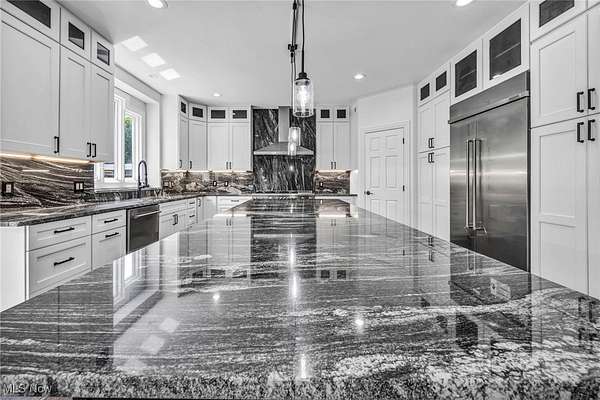 Welcome Home! A truly exceptional, all-brick estate nestled on over 2 acres in the picturesque community of Hinckley, Ohio. Spanning more than 6,500 square feet of luxurious living space, this fully remodeled home is a rare blend of craftsmanship, comfort, and modern elegance. Step inside to find 5 spacious bedrooms and 6 bathrooms, including a first-floor guest suite with a full bath-ideal for multigenerational living or for an office. The home boasts two stunning kitchens, both fully updated with granite countertops, stylish backsplash, and top-of-the-line appliances, including a Bertazzoni oven and KitchenAid suite. A hidden room adds an element of intrigue, while a custom walk-in closet and jetted tub in the master suite create a private retreat complete with its own cozy fireplace. Enjoy two inviting fireplaces throughout the home, luxury vinyl flooring throughout, Pella windows, a new Pella front door and sliding door, and all new electric fixtures. The central vacuum system, two HVAC units, and a sump pump ensure year-round comfort and convenience. The expansive walk-out basement-accessible through the 4-car garage-includes a second full kitchen and offers the potential for 3 additional bedrooms, making it a perfect space for extended family, guests, or a private apartment-style suite. Step outside to take in the meticulously manicured landscaping, a charming gazebo, a Trex deck, a paved patio with a brick fireplace, and stamped concrete walkways. The fully fenced-in yard also features an integrated sprinkler system. Located in a peaceful and prestigious neighborhood and served by one of the area's most sought-after school districts, this home offers privacy, luxury, and space rarely found on the market. Don't miss your opportunity to own this one-of-a-kind residence that redefines high-end living in Hinckley. Home Warranty is Included! Nearby attractions include Hinckley Reservation, Worden's Ledges,access to Hopkins International Airport, just 17 miles away