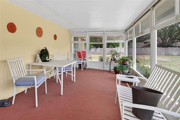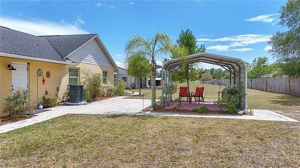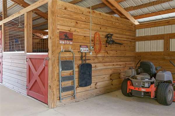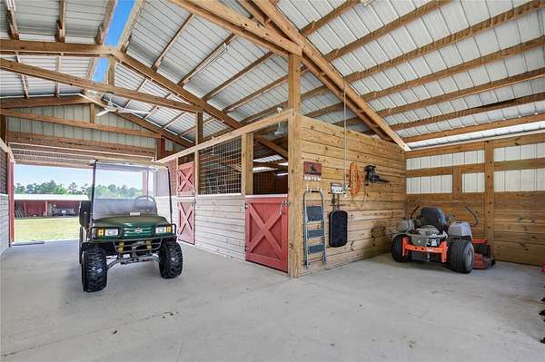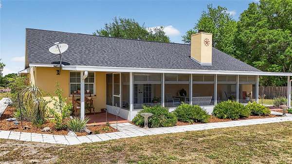 Welcome to this exceptionally well-maintained 3-bedroom, 2-bath home set on approximately 5 fully fenced acres in Sorrento, Florida. This property offers a rare combination of usable land, thoughtful improvements, and a peaceful setting. A shared pond enhances the landscape and is home to fish and local wildlife, adding to the overall enjoyment of the property. Inside, the home features a bright and functional layout with durable laminate and tile flooring throughout. The kitchen is well-equipped with stainless steel appliances and ample storage, making it both practical and efficient for everyday living. The 26x10 screened porch provides a comfortable space to relax and enjoy the surroundings, while the primary suite offers direct access to a private 10x10 patio through sliding glass doors and features an ensuite bath with a garden tub and a massive walk-in closet. An oversized two-car garage adds flexibility for storage, equipment, or hobbies. The property is well-suited for those needing space and versatility, featuring a 36x36 barn designed for horses with four 12x12 stalls, interlocking mats, fans in each stall, and a 12-foot-wide concrete center aisle. Additional improvements include a 36x14 RV carport with concrete pad, a 24x18 storage building, and a 12x12 covered grilling area, providing multiple options for outdoor use and storage. The acreage offers a blank slate for additional paddocks, fencing, or cross-fencing if desired. Major updates have already been completed, including a roof replacement in 2020, HVAC system in 2026, AC ductwork replacement in 2022, and a newly paved driveway in 2024, offering peace of mind and added value.