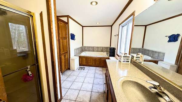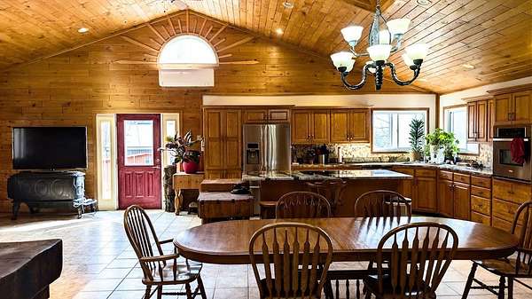 Sportsman's Paradise! Private Retreat with pond, timber, privacy, & more. Hunters, anglers, & outdoor enthusiasts, this is the property for you! Nestled on 40+/- wooded acres, this 4BR, 2.5bath home offers 3,242 sq ft of comfortable living surrounded by nature. The land is a dream setup, featuring a diverse mix of hardwoods, pines, apple trees, 1.5-acre food plot, & 2 enclosed Banks deer stands. A large privacy berm along the road ensures peace, quiet, & seclusion. The private 1 acre pond is a true highlight, approx. 20' deep & fully stocked with bluegill, crappie, trout, bass, & walleye. Enjoy thoughtful features including a slate waterfall, walking bridge, aerator system, & a dedicated 280-ft well. Exceptional storage & workspace with the 30'x48' Northland pole shed & 9' lean-to, an attached 2.5-car insulated garage featuring in-floor heat & 12'x36' workshop. Inside, the home showcases a warm rustic design with tongue-&-groove oak walls, ceilings, & cabinetry. The open-concept layout flows into a beautiful kitchen outfitted with stainless steel appliances & Atlas Granite counter-tops. This property delivers privacy, functionality, and year-round outdoor enjoyment.