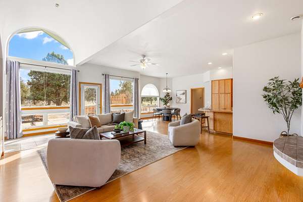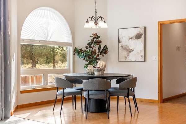 Privacy, quiet, in ''Juniper Ridge'' situated on over 11.27 acres. Bring horses and or any dreams you ever had for the ideal setting. Custom, one-owner passive solar home with radiant floor heat and flexible multi-generational potential. New roof and fresh exterior paint. Open-concept main-level living with a generous bonus room and balcony. Large unfinished storage area offers expansion potential. Four bedrooms, three baths, and two office/den/flex rooms. Triple garage (fits full-size pickup). Spacious kitchen with two ovens, pull-out cabinetry, granite tile counters, breakfast bar, appliance garage, and lazy Susan. Barrel ceiling, solar tube, skylights, and large windows create light-filled warmth year-round. Large patio, garden space, and irrigation system. Room for shop, arena, or ADU. Close proximity to BLM land for hiking, riding, and wildlife viewing. Peace, privacy, and all the possibilities.