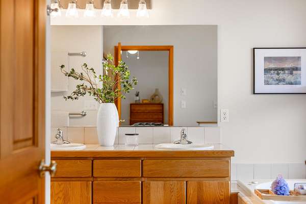 - Breakfast Bar, Built-In Features, Ceiling Fan(s), Double Vanity, Granite Counters, High Speed Internet, Linen Closet, Open Floorplan, Pantry, Primary Downstairs, Shower/Tub Combo, Soaking Tub, Solar Tube(s), Vaulted Ceiling(s), Walk-In Closet(s)