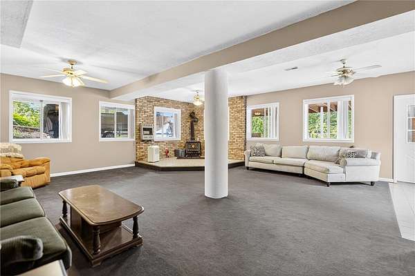 This 4-bedroom, 2-bath ranch home sits on 14+ acres, just minutes from Route 376 and downtown Beaver. Enjoy convenient single-story living with all bedrooms, bathrooms, and laundry on the main floor. The kitchen boasts granite countertops, a stainless drop-in sink, and oak cabinetry. Gas stove, oversized French door fridge, and dishwasher are also included. Step onto the covered porch and soak in the stunning views of wooded acreage, perfect for recreation, gardening, or hunting. The solid lower level features a cozy family room with a wood burner and is ideal for entertaining. Dual heating options--oil furnace with a supplemental wood boiler system--help keep costs low. The detached 3-car garage offers ample space for vehicles, a workshop, and plenty of storage. With a blend of flat, open land and mature woods, this property offers privacy and endless outdoor possibilities. A rare opportunity for those seeking space and seclusion, yet still close to everything.