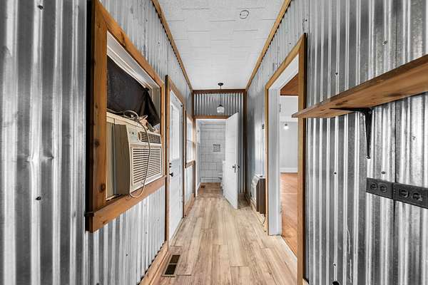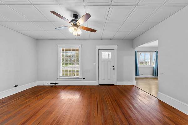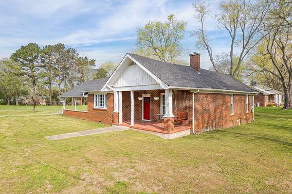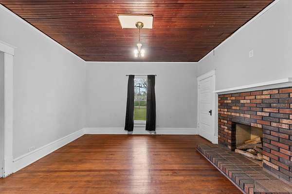 Welcome home to this charming all-brick gem! This cozy 2-bed, 1-bath home sits on a corner lot and offers 1,160 sqft of comfortable living space. Step inside and you'll immediately notice the beautiful hardwood floors flowing through the living room and both bedrooms. The dining room and kitchen feature easy-to-maintain laminate flooring. Two fireplaces add warmth and character throughout the home. The bathroom features a nicely tiled shower, giving the space a clean and updated feel. Outside is where things get even better. A covered front porch welcomes you home and provides the perfect spot for morning coffee and friendly waves to the neighbors. Out back, you'll find a spacious deck ideal for grilling and entertaining, plus a fenced-in backyard that keeps pets and little ones safe while they play. The 2-car carport means no more scraping frost off your windshield on cold mornings, which is honestly reason enough to make an offer. See media picture for property across the road that is included with this sale. Property is in a flood zone. Schedule your showing today before someone else scoops up this sweet little find. Selling AS-IS.