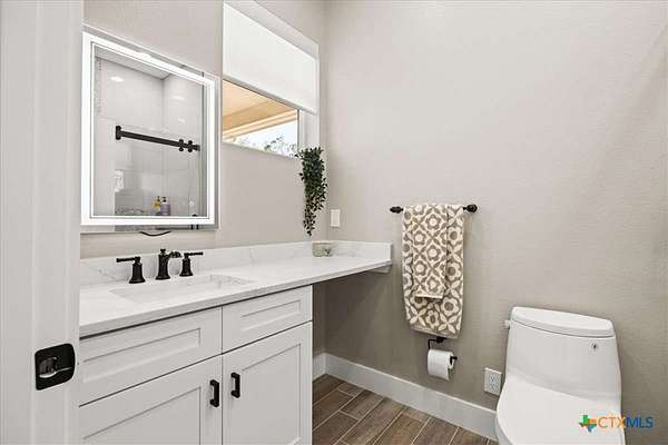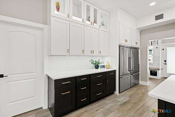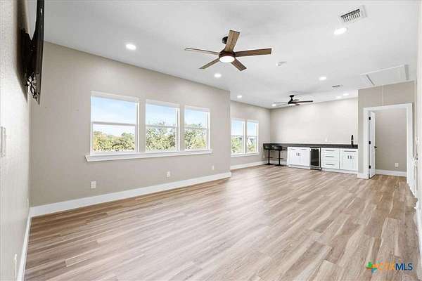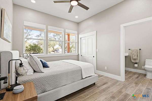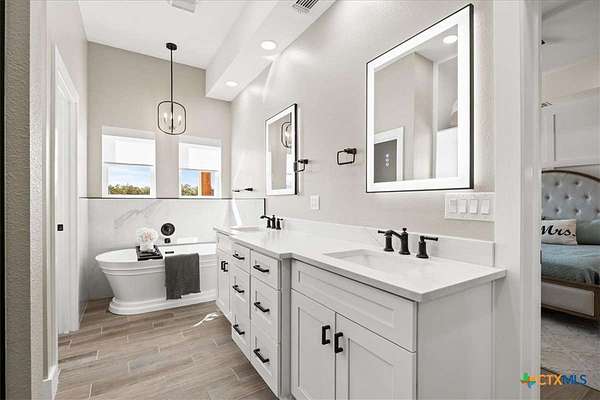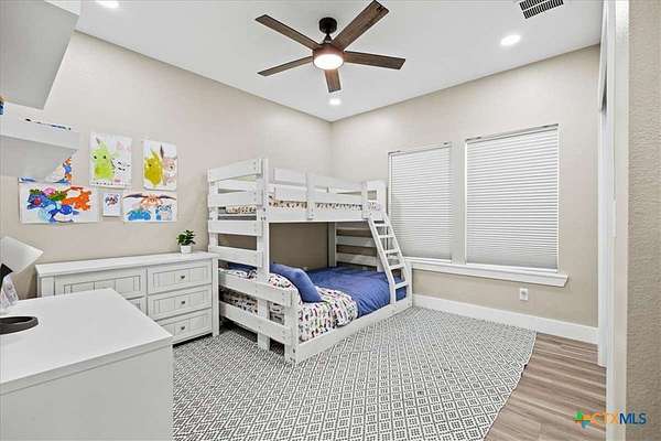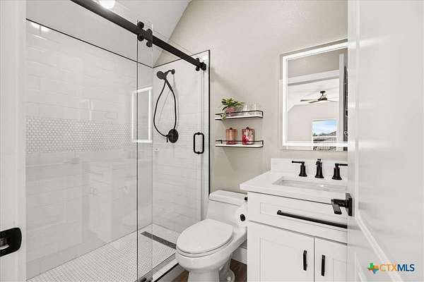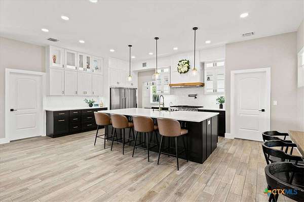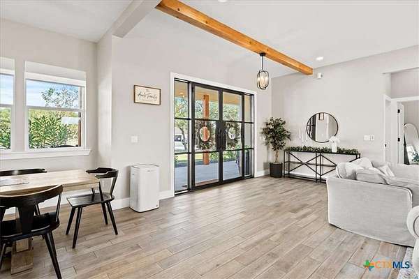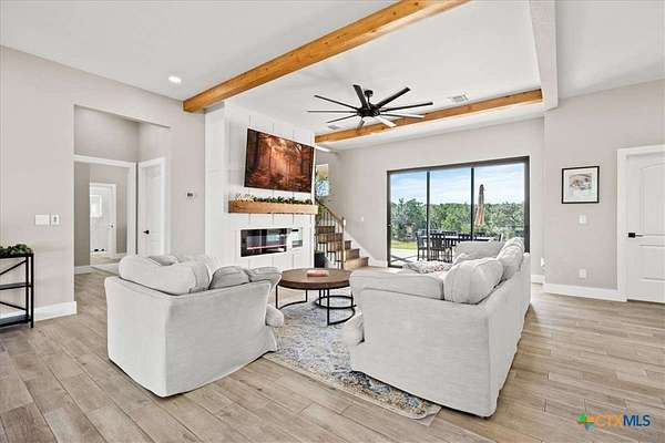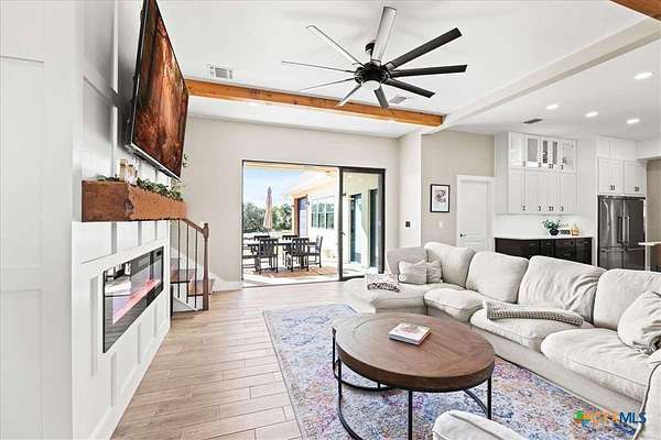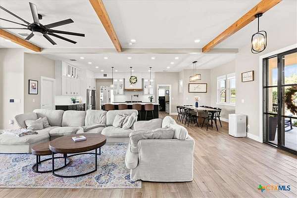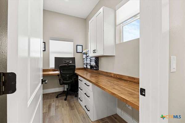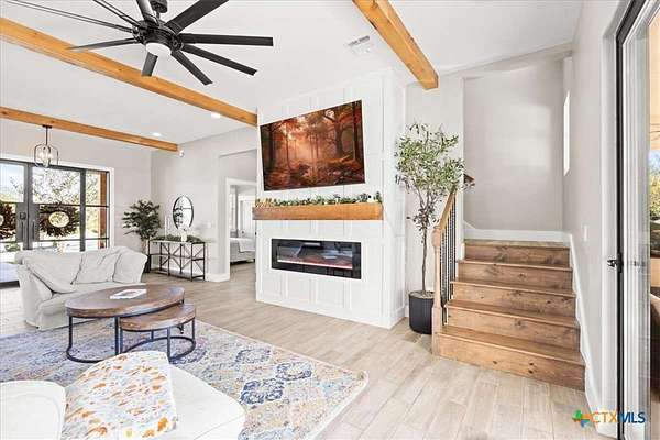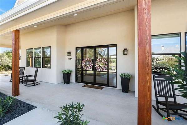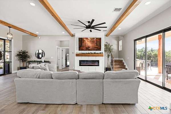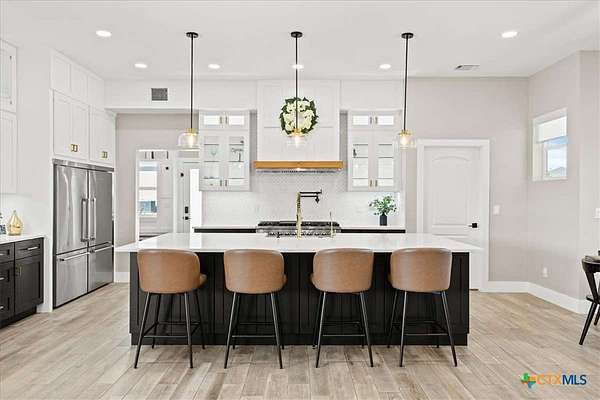 Welcome Home! Nestled in the highly sought-after Havenwood gated community, this modern farmhouse sits on a quiet cul-de-sac within a 1.5-acre lot, offering 3,500 square feet of thoughtfully designed living space. The home features five bedrooms, four and a half bathrooms, a loft, a flex room, and a private office, perfectly blending functionality with timeless style. The open-concept floor plan showcases a chef's kitchen with custom cabinetry, an oversized island, a butler's pantry, and premium finishes. A spacious living area flows seamlessly into the dining and kitchen spaces, creating an ideal setting for both everyday living and entertaining. The loft is kitchenette-ready, providing additional flexibility for a guest suite, game room, or private retreat. Step outside to enjoy the serene, peaceful backyard, perfect for relaxing or entertaining. Additional highlights include tankless propane water heaters, 2x6 framing with spray foam insulation in the exterior walls and attic, gas cooking, and an outdoor kitchen. Every closet features custom built-ins, while the office, pantry, and master closet are accented with butcher block counters. Matching quartz countertops are found throughout, and the home offers ample attic storage, custom finishes, and versatile living areas to fit your lifestyle. Located in the esteemed Comal ISD with top-rated schools, this property combines the best of both worlds-peaceful Hill Country living just minutes from shopping, dining, and all the comforts of town.