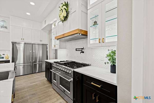 - Dishwasher, Disposal, Double Oven, Gas Cooktop, Gas Range, Gas Water Heater, Plumbed For Ice Maker, Range Hood, Refrigerator, Tankless Water Heater, Wine Refrigerator