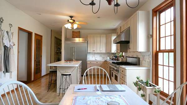 Home with two Master Suites! This is precisely in the Equestrian Jo Daviess corridor on Longhollow but hidden. 730 feet elevation on a secluded 7.44-acre estate, this exceptional country home commands breathtaking panoramic views of Longhollow that rival the Irish countryside. Just 20 minutes from historic downtown Galena and 40 minutes from the majestic Mississippi River, this hidden gem offers the perfect balance of peaceful seclusion and convenient access to regional attractions. Location & Surroundings - Surrounded by tranquil meadows and forests with meticulously landscaped perimeter gardens - Five minutes from 63 holes of championship golf, including the nationally recognized "The General" at Eagle Ridge - Minimal traffic on Longhollow Road, with Highway 20 carrying most tourists and commuters - Spectacular sunrises and unparalleled stargazing in clear night skies Main Level - Welcoming boot room opening to a charming screened porch ideal for intimate dining - Spacious kitchen featuring a professional Viking stove and oversized GE refrigerator - Elegant formal dining room with see-through gas fireplace - Distinctive parlor and library connected by a beautiful two-sided wood-burning limestone fireplace - Accessible master suite with handicap-designed bathroom - Convenient powder room centrally located between kitchen and library Second Level - Stunning artisan-crafted staircase leading to an additional master suite - Versatile loft space incorporating a salon and laundry area - Two additional bedrooms sharing a full bathroom - Premium maple hardwood flooring throughout Lower Level - Luxurious steam bath and entertainment center with fireplace - Two additional bedrooms - Modern utility room featuring new water heater, water softener, dual furnaces, and commercial dog bath - Walk-out access to the property's serene natural surroundings Additional Features - Extra-deep two-car garage with unfinished space above, ready for conversion to an office, guest quarters, or rental opportunity (pre-plumbed and wired) - Classic saltbox colonial architecture with modern country aesthetic - Rich local soil perfect for gardening enthusiasts - Featured in Illinois Tourist Bureau brochures for its exceptional beauty This architectural treasure combines authentic saltbox colonial charm with modern amenities, creating a Martha Stewart-inspired country retreat just waiting for your personal touches. This home has great floors, solid maple flooring. Good mechanical condition. Motivated Seller. Sold As Is. No HOA fees Only 7 minutes to the General Golf Course on Longhollow in Galena.