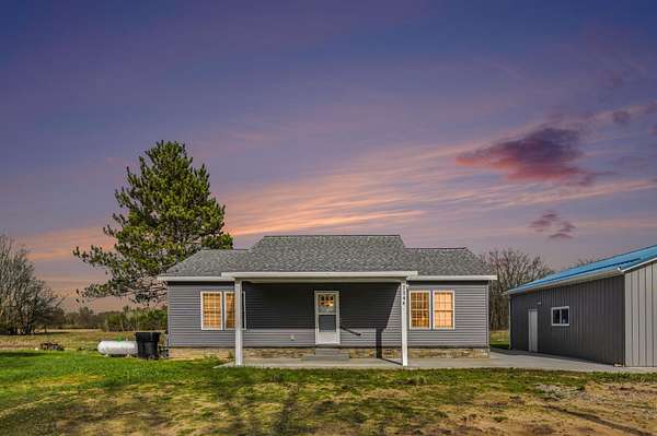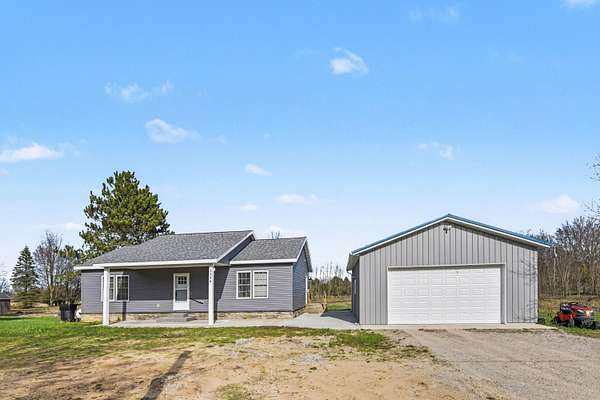 Escape to the peace and privacy of country living with this newly built 2-bedroom, 2-bath home set on 6.75 beautiful acres just outside of Pentwater. This thoughtfully designed home offers modern comfort paired with a serene, natural setting--complete with two private ponds that enhance both the views and the overall atmosphere. Start your mornings on the back deck taking in breathtaking sunrise views, and end your evenings relaxing on the covered front porch as the sun sets over the countryside. The property also features a detached garage, offering plenty of space for storage, hobbies, or recreational equipment. Whether you're looking for a full-time residence or a peaceful getaway, this property delivers the perfect blend of new construction, acreage, and tranquil surroundings--all just a short drive from Pentwater's beaches, shops, and dining.
