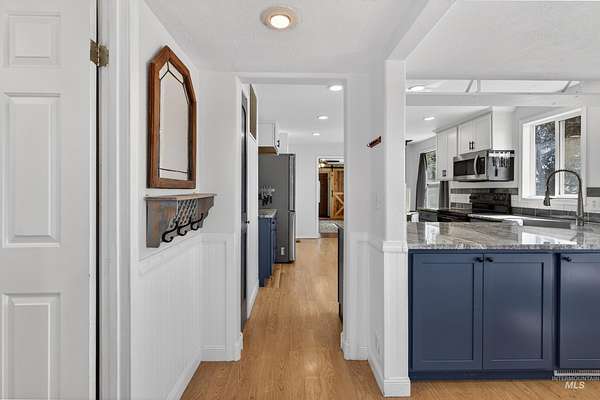 Welcome to this charming country property offering the perfect blend of space, character, and convenience. Situated on 2.83 acres in Caldwell, this 2,208 sq ft home features 3 bedrooms and 3 bathrooms and has been thoughtfully updated over the years while maintaining its original charm. Inside, you'll find comfortable living spaces including a finished basement and a cozy wood stove, creating a warm and inviting atmosphere. Major updates have been completed over time, including improvements in 1978, 1990, 2014, and most recently in 2023. The property is well-equipped for hobbyists, animals, or extra storage with a spacious 40x42 shop, a 12x40 RV cover, and an impressive 22x70 barn. The acreage also offers a delightful variety of established fruit plants and trees including Concord grapes, blackberries, raspberries, strawberries, multiple apple varieties, apricot trees, a pie cherry tree, and two Bing cherry trees. Tucked into a peaceful setting yet conveniently located, this property provides quick freeway access and is less than 15 minutes from Costco and other amenities in Nampa. Located within the desirable Middleton School District, this unique property offers the opportunity to enjoy country living without sacrificing convenience.