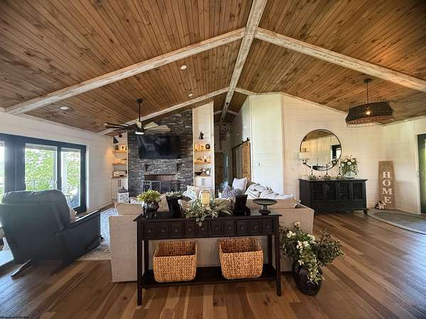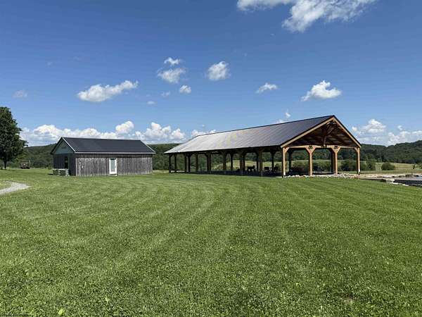 Turn your dreams into your reality! Enjoy this one-of-a-kind property! 20 flat acres to enjoy with abundant opportunities. Bask in one level living at its best with panoramic views from your 8 ft covered wrap around porch-a livable farm house build in 1897 and an original log cabin from 1800s. Features a 80x30 pavilion with a 33x21 sized dressing room with bathrooms for weddings/showers/events/receptions or whatever you desire. Highlight the double heart shaped pond perfect for any special occasion. Home is spray foam insulated with epoxy in-floor heat in the LL and in-floor heat to the garage. Bar top is live edge epoxy. Home has 3 gas fireplaces and shiplap throughout. 28x12 unfinished bonus room above the garage. 2 car attached garage on main level with LL showing 4 additional garage doors or useful as windows for living area. Just 5 miles from the interstate and centrally located between Deep Creek, Nemacolin, and Cheat Lakes communities. You need to see everything this home has to offer!!