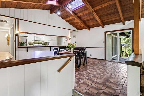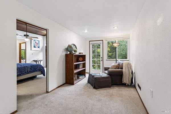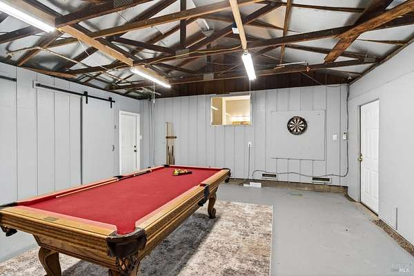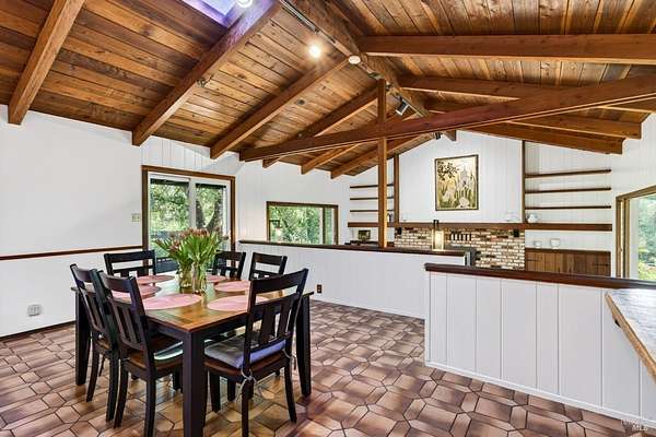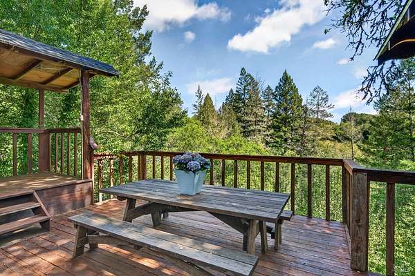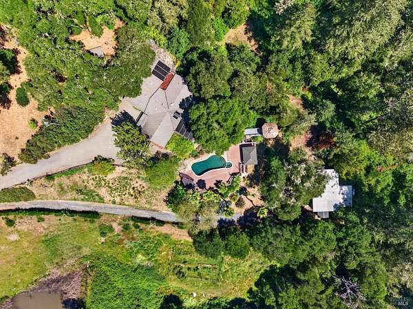 Nestled in Healdsburg on a secluded 6-acre property cherished by one family for over 42 years, this tranquil retreat offers serenity, privacy, and conveniencejust an 8-minute drive from the vibrant Healdsburg Plaza. The home features vaulted ceilings crafted with local clear-heart tongue-and-groove redwood, a cozy fireplace, generous living spaces, 3 bedrooms, 3 full bathrooms, a laundry room, and a versatile game room/flex space. Each bedroom enjoys its own outdoor access and private deck. The primary suite includes a dedicated office area, offering a quiet and productive workspace within the comfort of home. Outside, enjoy a Pebble Tec pool, custom Trex and redwood decking, multiple seating areas, and a BBQ picnic space. The grounds include fenced meadows, a peaceful pond, and fenced garden beds, with abundant water serving the property. Over 1,000 sq ft of insulated, fully powered, and climate-controlled outbuildings, garage, and workshop space provide exceptional flexibility for hobbies, storage, or creative use. A serene path leads directly to Mill Creek. This property beautifully blends rural charm with modern comfort, ideal for those seeking a peaceful retreat close to Healdsburg's amenities.