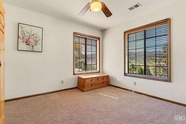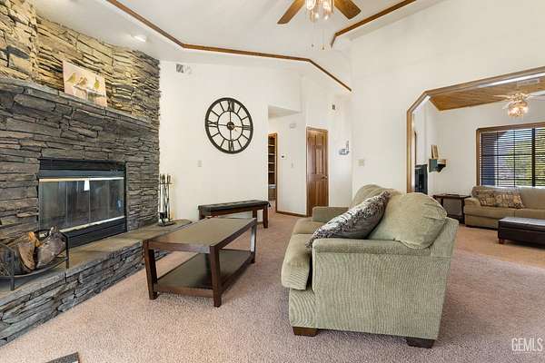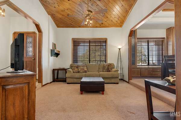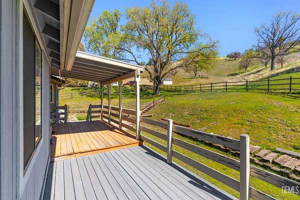 Live the Mountain Lifestyle in the Gated Community of Bear Valley Springs at 23480 Meadow View Ct Tehachapi. 2 acres with Breathtaking Views, mature Trees, and Privacy! Nested at the end of a cul-de-sac this home has a 3 car Garage, 2 Living areas, formal Dining, Gas Fireplace, and 3 beds with 2 baths. The front deck and Covered Porch welcome you in - High ceilings, tongue & groove, wood doors & trim, and custom Cabinet-built ins seal the deal. Family room with fireplace and a sliding door to the covered patio. Large kitchen, oversized indoor laundry mud-room, and a cozy step-down living room make a very functional floorplan. Owners suite bedroom has a door to the rear deck, and bathroom that has a separate tub and shower. The garage has insulated roll up doors with direct access and a utility room workshop area. Central Heat & air equals year-round comfort. Fenced in backyard will keep your pets near, while the 2-acre parcel allows for horses or other approved animals. Available now!