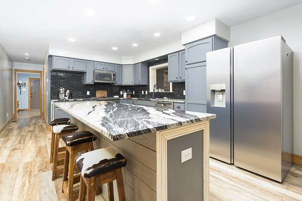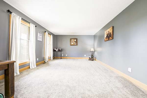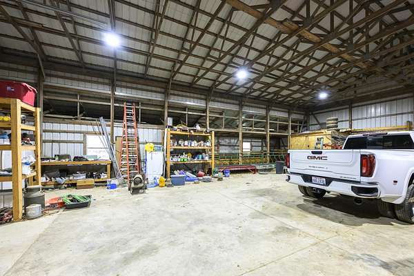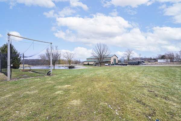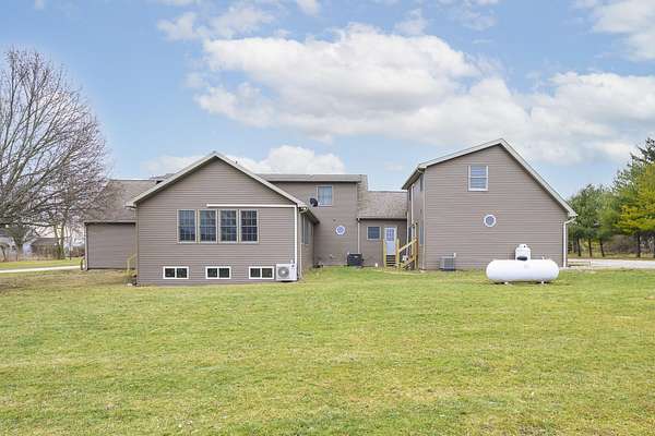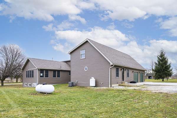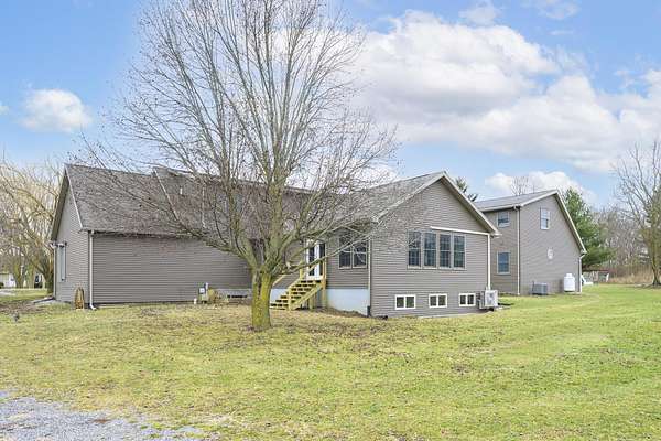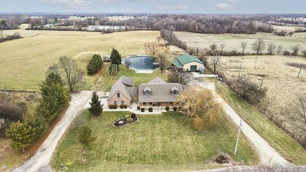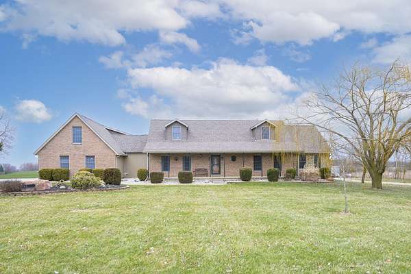 Spacious cape cod on 17.01 acres with pole barn, pond and apartment! Many updates since 2018 include kitchens, baths, flooring, siding, HVAC, electrical and more! The main level includes a formal living room, eat-in kitchen, large family room, laundry with half bath, breezeway/mudroom, owner's suite with private office. The kitchen has granite counter tops and lots of counter space. The family room has a custom three-sided gas fireplace and many windows overlooking the pond and backyard area. The owner's suite has a walk-in closet, custom marble bath with walk-in shower, double vanity and jetted soaking tub, plus a private office and a second walk-in closet. Upstairs are two bedrooms with walk-in closets, a landing/sitting area and a full bathroom. The full basement runs under the entire home and is well-insulated, and includes a second kitchen area, family/game room space, 200 amp service, potential fourth bedroom, lots of storage and two egress windows. The attached 2-car garage is insulated and there is a large covered front porch on the home. The apartment features a deck, living room, eat-in kitchen, full bathroom, laundry area all on the main level with a large bedroom, closet and half bath upstairs. The outbuilding is 40x64' with a 12x64' lean-to, concrete floors, electric, water, a 16' overhead door with opener, back slider door, plus a concrete parking pad in front of the building. The pond is approximately 0.25-acres with a pea gravel beach area, deck and is stocked. The tillable acreage is currently planted in alfalfa and property is enrolled in CAUV. Call today for your appointment to see this home!