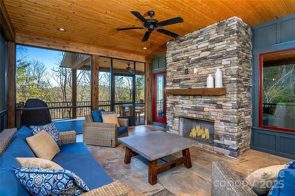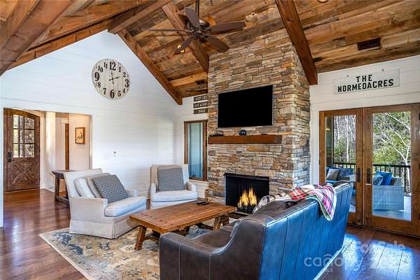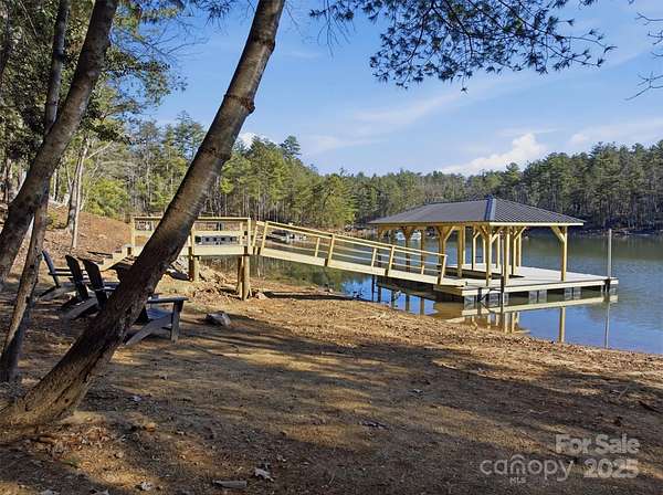Open, airy, and bright waterfront home with rustic charm located in renowned 1780 on Lake James. Known affectionately as Kingfisher to the many vacationers that choose this beautiful getaway every year, this successful short term rental is being offered turn-key and furnished. On the main floor you'll find the large but cozy family room with vaulted ceilings and dramatic stone fireplace. The ample kitchen, walk-in pantry, and dining room are adjoining with access to the large back deck. Stop here and soak-in the view over the waterfront beach and dock. Laundry and spacious primary suite with access to the screened porch and outside fireplace are also located on the main floor. The lower level includes a second full suite, 2 additional large bedrooms, 2 full and 1 half baths, a bunk room with 4 built-in bunk beds, rec room, mud room, additional laundry, and UTV garage. Camp Lake James membership included!