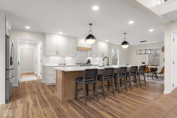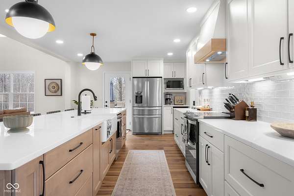 Set on nearly 2.5 wooded acres, this stunning 4-bedroom, 3 full and 2 half bath home offers the perfect blend of privacy, design, and functionality. The beautifully updated designer-style kitchen and main level create a welcoming space for everyday living and effortless entertaining, with thoughtful finishes and an open, flowing layout. The primary suite on the main level provides a private retreat, ideal for long-term comfort and convenience. Upstairs, two spacious bedrooms each feature their own private bath, offering flexibility for guests or family members. The finished basement adds valuable additional living space-perfect for a recreation room, media area, home gym, or play space. Surrounded by mature trees, the expansive outdoor setting offers peaceful seclusion while still allowing room to gather, relax, and enjoy nature. This home is thoughtfully designed to support both entertaining and family life, with space to grow and room to breathe.