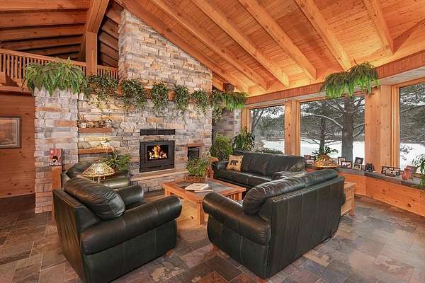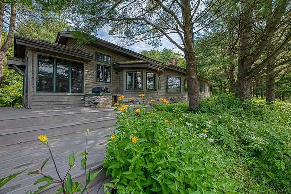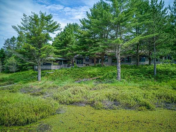 This 4 bedroom/ 3 bath house is located just north of the WI/MI border near Land O'Lakes, WI on 14.94 ac. with 782 ft. of frontage on quiet Twist Lake. The house is over 6000 sq. ft. of excellence including custom built-in cabinetry, in-floor heat throughout, 1ft. thick exterior walls, and 12 in. of insulation in the ceiling. Other features are a gourmet kitchen, large brick fireplace in the sitting room, a double gas fireplace between the primary bedroom and office, a central vacuum system, a formal dining room, slate flooring, a 3-seasons porch, gazebo, deck, and 3 garages. The professional landscaping has a creek, waterfalls, and pond in the garden area. With US owned lands on 3 sides, walking trails, groomed ski trails, ATV and snowmobile trails within a stone's throw, all your recreational needs are out your back door. A true labor of love, this home is the ultimate in Northwoods living!