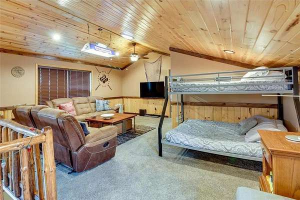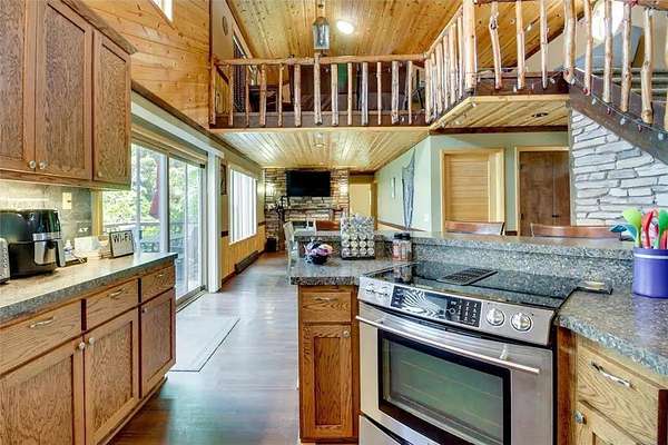 Furnishings negotiable. Amazing Roosevelt Lake property with over 700' of sandy lakeshore to enjoy! Walk into the beautiful kitchen with custom cabinets, huge center island, and soaring two story ceilings! Log railings and wood ceiling with huge loft that lead to upstairs bedroom with amazing lake views. Two more bedrooms on the main and a 4th in the lower level plus bunk area in loft! You will love the lower family area with custom wet bar with ice maker & wood beam ceiling that walks out to the lake! Electric with stone surround fireplace next to dining room! Lots of room for yard games and volleyball or extra camping for friends down by the lake with sand beach and two docks! Very unique opportunity to own this much lakeshore on an awesome fishing lake with restaurants and access to Lawrence Lake as well. Start making lake memories today!