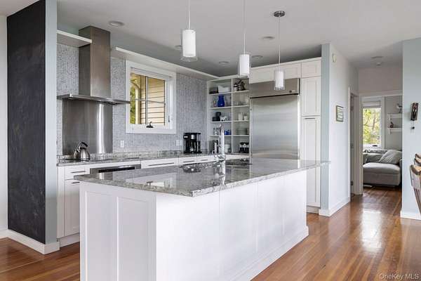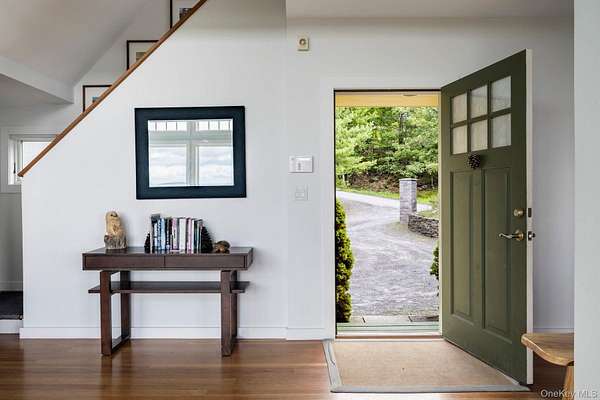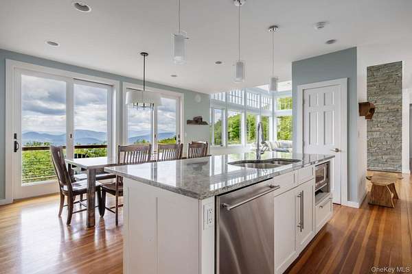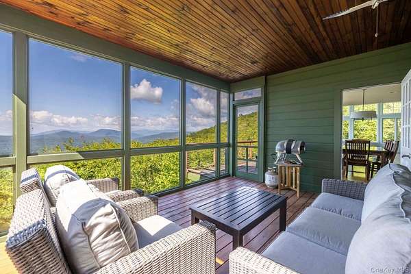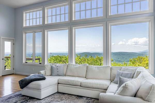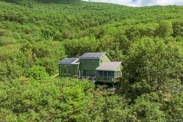 Perched high above the town of Woodstock, this rare and exceptional home offers a front-row seat to breathtaking panoramic views that stretch from the mountains to the Ashokan Reservoir. Designed by noted architect Les Walker, this contemporary residence evokes the magic of living in a luxurious treehouse--where every room is immersed in natural light and dramatic scenery.
