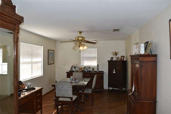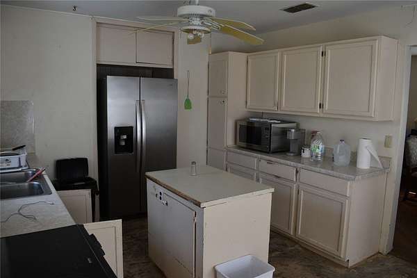 This 4 bedroom, 2 bath home sits on just under 2 acres and offers a rare opportunity for the right buyer to create something truly special, with the heavy exterior work already done. The home has been completely refreshed on the outside with fresh paint, new siding, and beautiful front and back decks, along with extensive fencing and cross fencing that make it ideal for animal lovers, including eight shaded dog runs. The property features three car covered parking, a large concrete driveway with ample parking, a two car detached garage, three Tuff sheds with one equipped with a window unit, and the seller is including the golf cart, lawn mower, bbq smoker, and tools currently in the shed. A front gate with a separate pedestrian entrance adds privacy and security, while a rear property entrance with an additional power pole allows easy access for extra vehicles, trailers, or recreational toys. The foundation has recently been leveled, and while the seller began interior renovations, the primary bathroom is not currently functional, though the guest bathroom is in working order. Laundry area is in it's own separate room off of the kitchen. Original hardwood floors remain in the living and dining areas, with additional rooms needing new flooring, offering a blank canvas to customize to your taste. With endless potential, this property is perfect for someone who loves the outdoors, values space and functionality, and is not afraid to roll up their sleeves to finish the vision. There is an additional acre with an electric pole and possible well and septic for sale across the street that could be included with this purchase, at the right price. Being sold "as is." Available for a cash or private lending only.