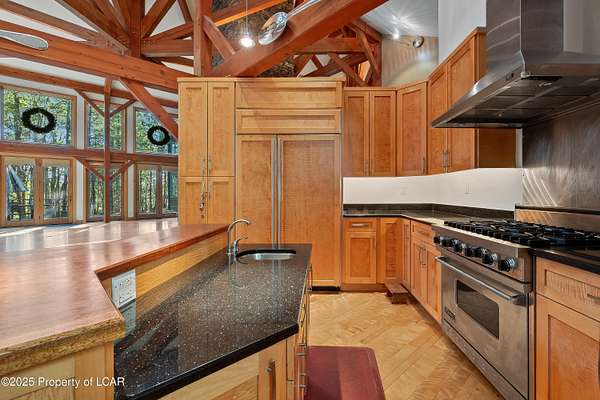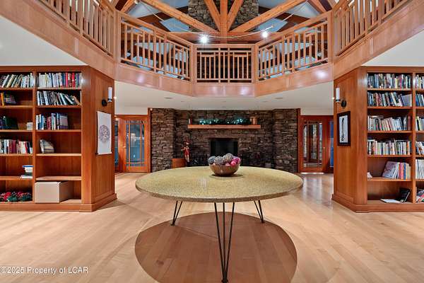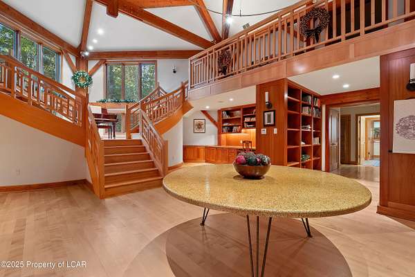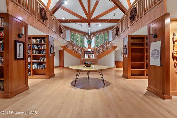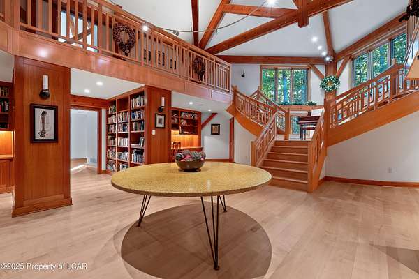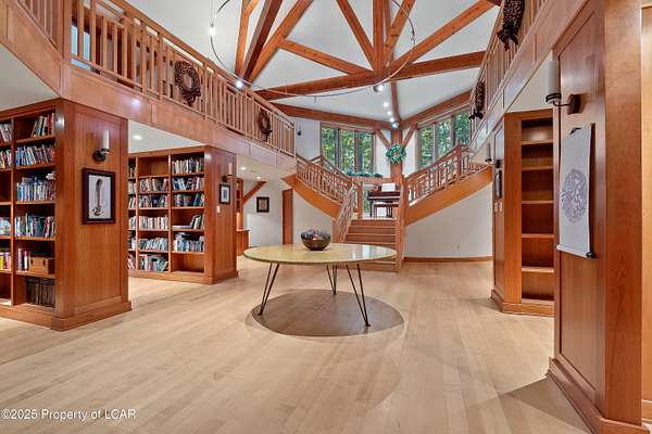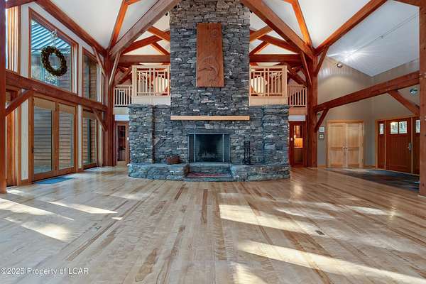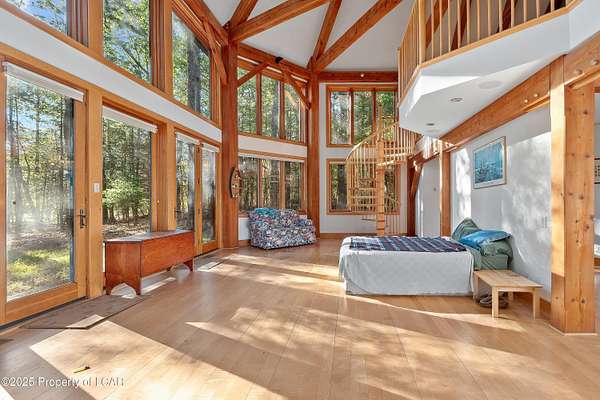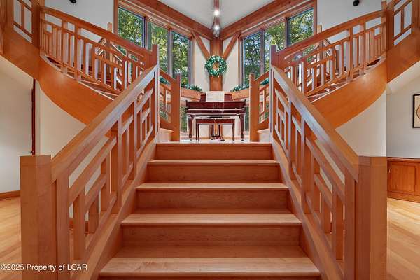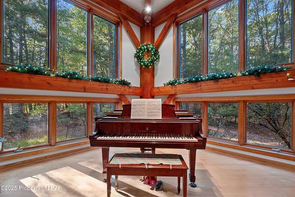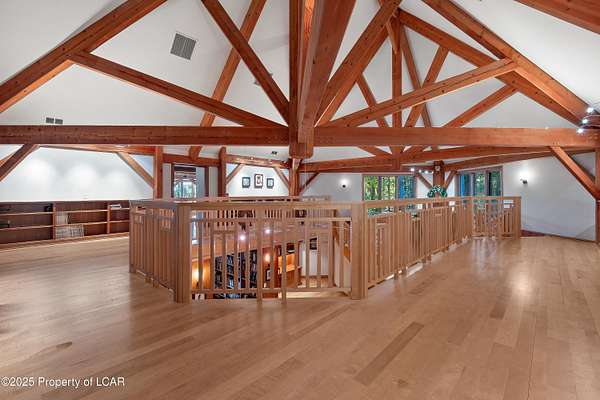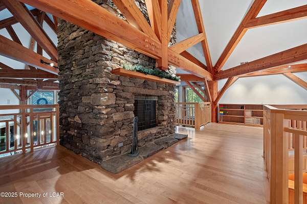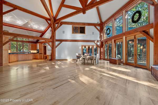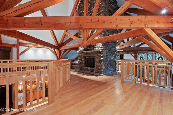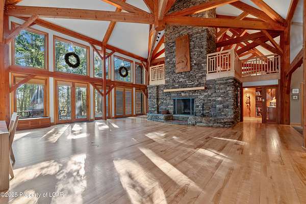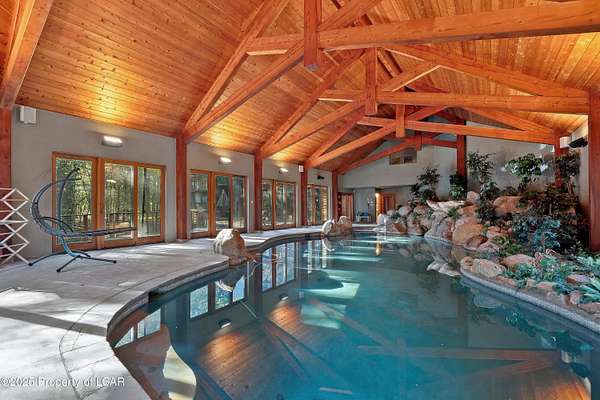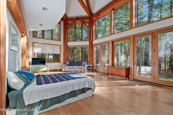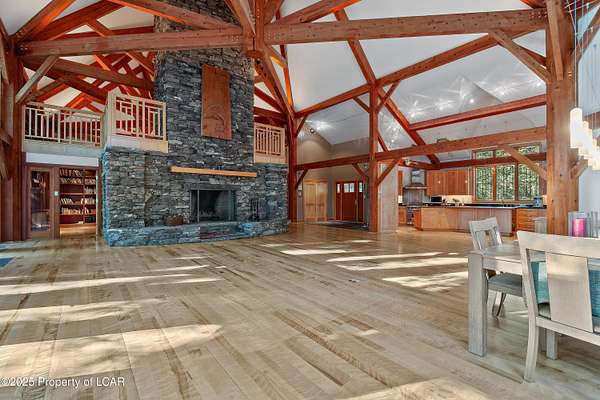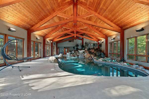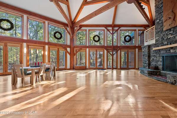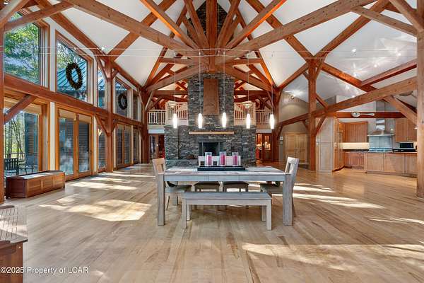 Est $11,905/moWelcome to your own private Back Mountain Timber Frame Lodge with flame birch, english sycamore, and maple woods sourced from multiple continents, perfectly set on 12 secluded acres under 33 feet of floor to ceiling glass that invites the wilderness right inside. From the movie theatre to the libraries, or the gym to the indoor pool, the wood shop, or the music room, you'll never want to leave!