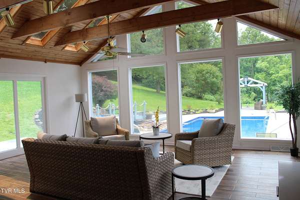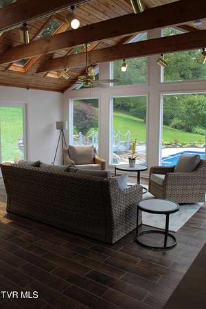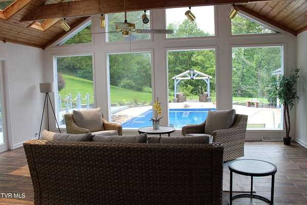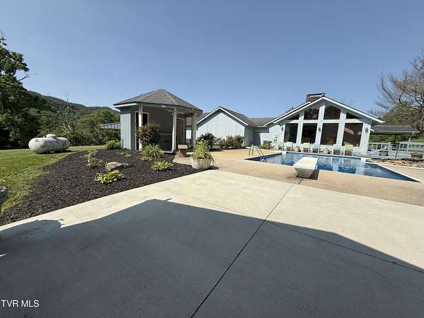 Contemporary Home and 45 +- Acres Has Commanding Hilltop Setting with Grand Views and Loads of Privacy! Perfect for Those Who Enjoy Trail Riding, Hikes, and Hunting. Home Has Been Redecorated and Updated, New Hardwood Floors, CeramicTile, , Light Fixtures--the List Is Long! Features Three Bedrooms, Office, Two Baths, Great Room w/ Stone Fireplace (Gas Logs), Upgraded Kitchen (All New Stainless Appliances, Quartz Countertops) Florida Room Opens Onto Inground Pool Area (16' x 32'), Pool House, Covered Area for Hot Tub, Rear Deck, Three Car Garage, Paved Drive, Barn/Workshop. Land is Mostly Wooded, Approx 8 Acres Cleared Pasture with Beautiful Views (Several Awesome Homesites)