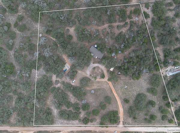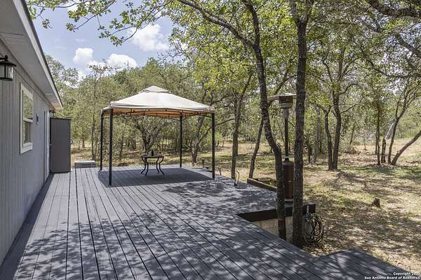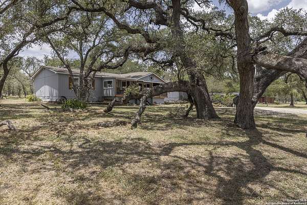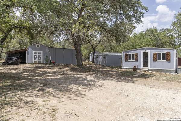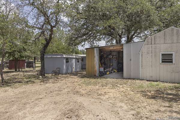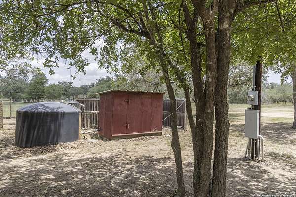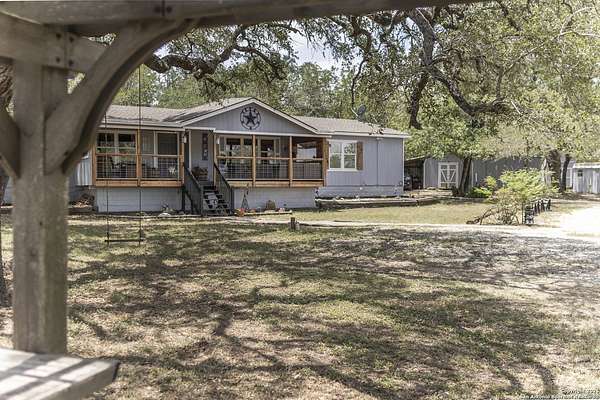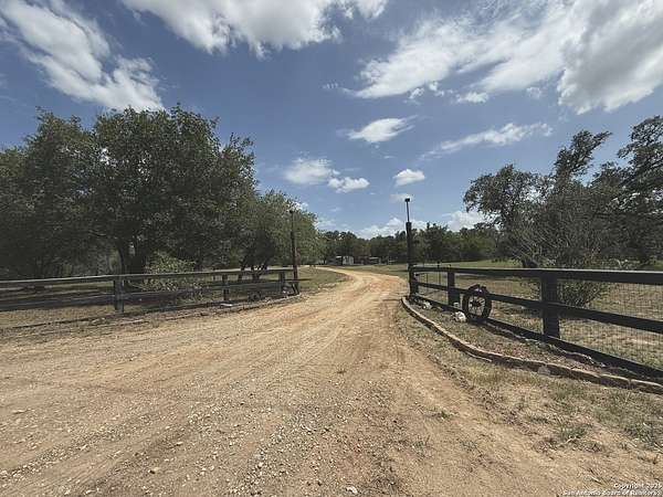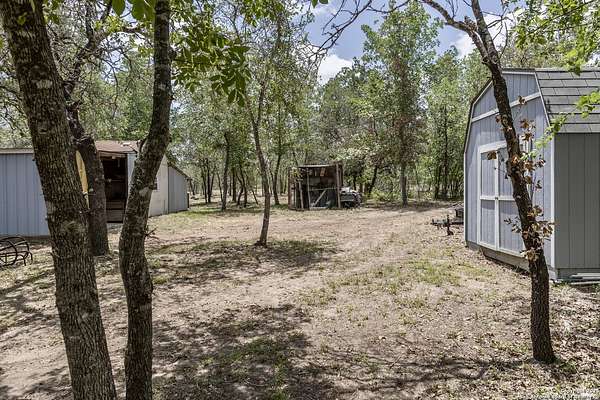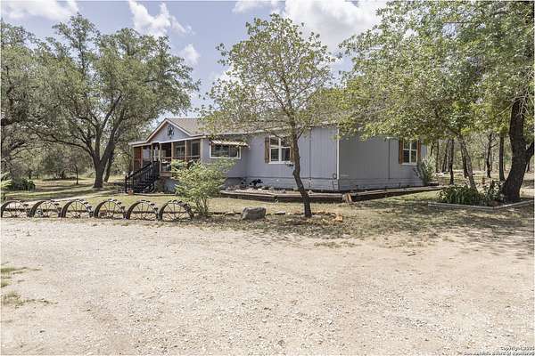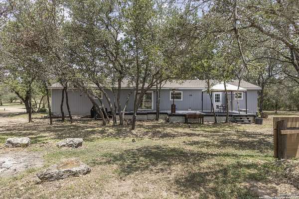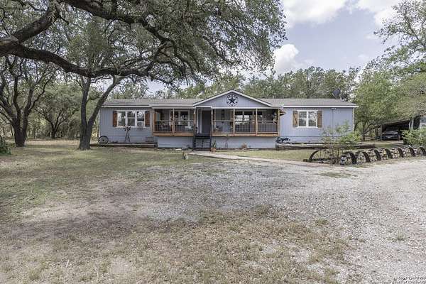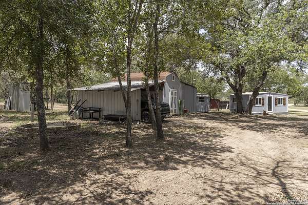 Stop scrolling- this 10-acre retreat has it all. Updated 3 bedroom, 2 bath home. Gated entry. Circle drive. Sprawling oak trees and wide-open skies. From the moment you arrive, it feels less like a house and more like a lifestyle. Inside, the home is warm and inviting with modern finishes. Open living and dining. Large kitchen. A second living room or office. Comfortable bedrooms with plenty of storage. The enclosed front porch, wrapped in wood, adds charm and extra living/entertaining space. Out back, an oversized deck overlooks a fire pit with stone seating, koi pond and target practice ranges, and around the corner is your fenced garden with raised beds. Outbuildings include a powered workshop/barn with covered parking, storage shed with loft, bird coop, and two climate-controlled buildings for hobbies, guests, or a home business. There's also a full slab ready for your second home, garage, or entertaining area. The setting here is unforgettable- towering oaks shade a pergola and swing, giving the land a private park feel. Just off 281-S near 1604, commuting is easy. Even better, the tax rate is only 1.49%. This is true country living, close to the city, ready for you to make it your own.