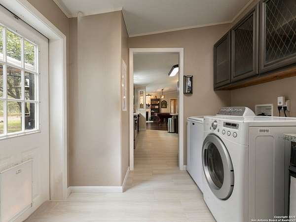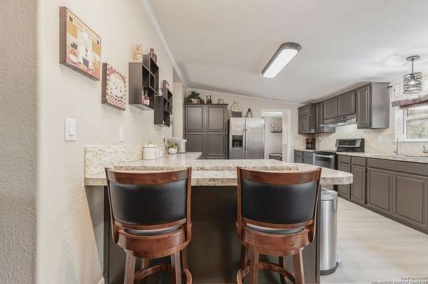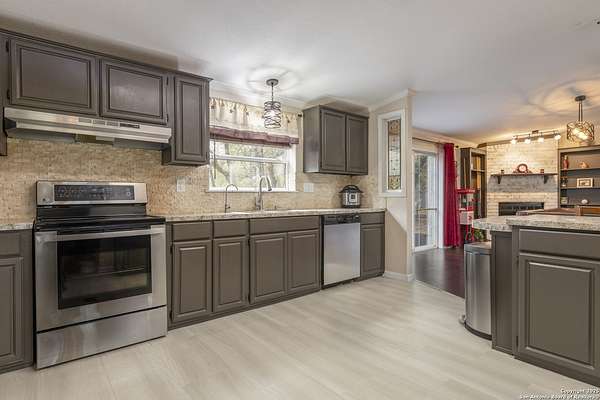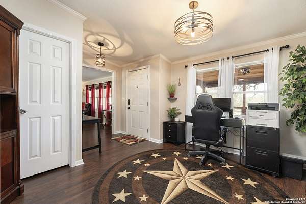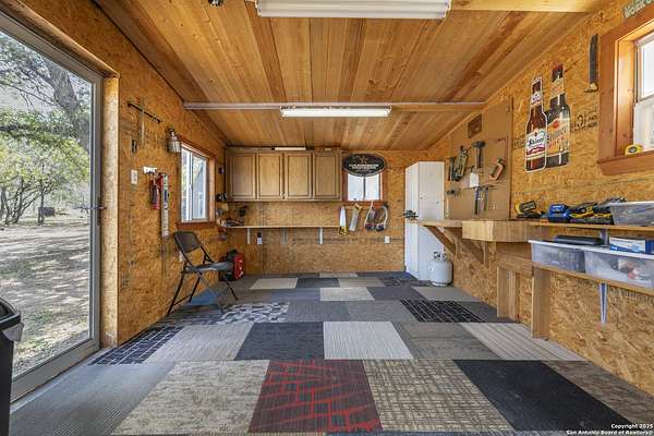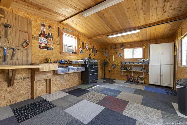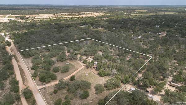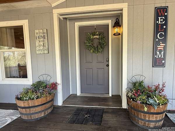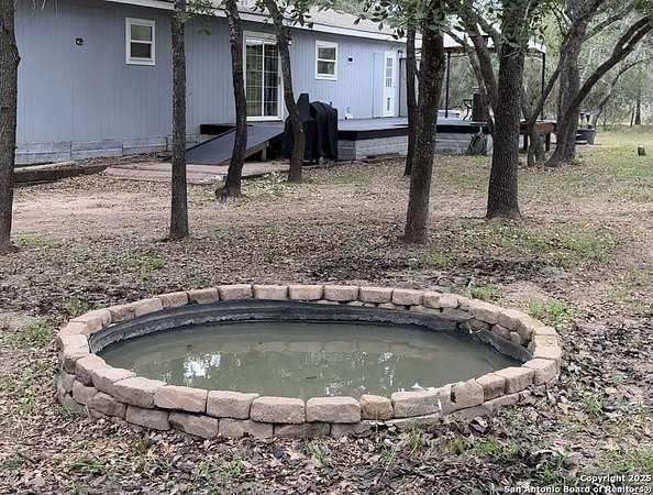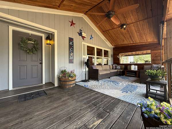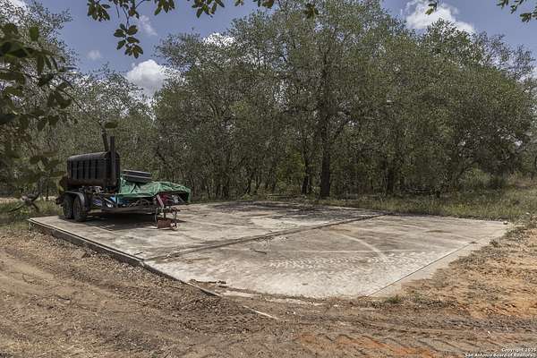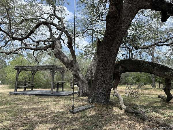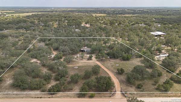 Stop scrolling- this 10-acre retreat has it all. Updated 3 bedroom, 2 bath home. Gated entry. Circle drive. Sprawling oak trees and wide-open skies. From the moment you arrive, it feels less like a house and more like a lifestyle. Inside, the home is warm and inviting with modern finishes. Open living and dining. Large kitchen. A second living room or office. Comfortable bedrooms with plenty of storage. The enclosed front porch, wrapped in wood, adds charm and extra living/entertaining space. Out back, an oversized deck overlooks a fire pit with stone seating, koi pond and target practice ranges, and around the corner is your fenced garden with raised beds. Outbuildings include a powered workshop/barn with covered parking, storage shed with loft, bird coop, and two climate-controlled buildings for hobbies, guests, or a home business. There's also a full slab ready for your second home, garage, or entertaining area. The setting here is unforgettable- towering oaks shade a pergola and swing, giving the land a private park feel. Just off 281-S near 1604, commuting is easy. Even better, the tax rate is only 1.49%. This is true country living, close to the city, ready for you to make it your own.