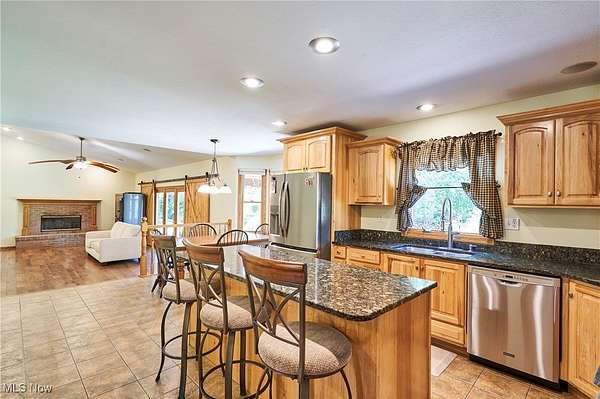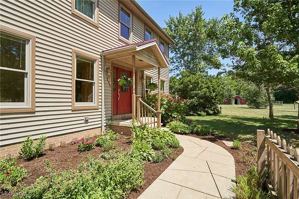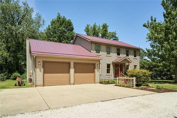 Welcome to this charming, one-owner Colonial-style home in beautiful Wadsworth, situated on a spacious 3.21-acre lot. This home offers 4 BDs and 3 full BA across 2,412 sf of above-grade living space, providing plenty of room for both everyday comfort and entertaining. The spacious main level features a large eat-in kitchen with hickory cabinetry, granite countertops, and recessed lighting. The kitchen opens to a sunken family room with vaulted ceilings and direct access to the covered back patio and backyard. Additional main-level highlights include formal dining and living rooms, a convenient laundry area, a home office, and a full bathroom. Upstairs, the spacious primary bedroom features an en suite bath complete with a soaking tub, walk-in shower, and dual vanities. Three additional generously sized BDs and a shared full BA complete the second level. This home also offers an attached 2-car garage. The expansive property features a deck with a pergola and direct access to the hot tub just off the dining room, along with a stamped concrete patio, mostly covered by an awning-ideal for outdoor entertaining. A highlight of the property is the spacious two-story barn (48' x 36') equipped with 100 amp service. The main level offers 12-foot side walls, two garage doors-one at the front (9' x 8') and one at the rear (9' x 10')-a heated full bathroom, and a 48'x8' lean-to covered patio. Upstairs features a full kitchen, full bathroom, and a bedroom, all of which are heated by electric baseboard. Updates include Metal Roof (2018) and Windows (2005). Don't miss your chance to own this beautiful, one-of-a-kind property! Schedule your showing today! See MLS 5144732 for house, barn and additional 12.33 acres.
