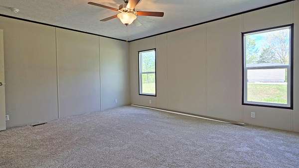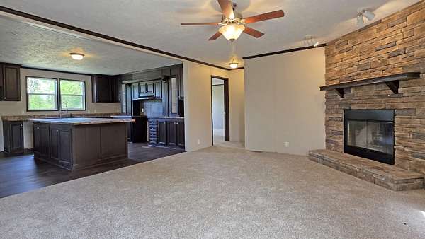 Looking for space to spread out without sacrificing comfort or style? This one delivers. Welcome to 235 Hillview Lane in Bloomfield, Kentucky. Situated on 8.15 acres, this 2018-built 76x32 double-wide offers the room, layout, and features buyers are searching for. Step inside and you will immediately notice the open layout that connects the kitchen and main living area, creating a natural gathering space for everyday living or entertaining. The kitchen offers generous cabinet space, a large island, and room to move, making it both functional and inviting. This home features two separate living areas, giving you flexibility for a second family room, media space, or quiet retreat. The stone fireplace adds warmth and character, making it a focal point of the home. With 3 bedrooms, 2 full baths, and a dedicated office, there is space here for work, rest, and everything in between. The large utility and laundry room provides the kind of storage and functionality that is hard to find. The primary suite is designed for comfort, featuring a spacious layout along with a bathroom that includes a double vanity, soaking tub, and separate shower. Step outside and enjoy over 8 acres of land with room to roam, garden, or simply enjoy the privacy of a rural setting. The attached storage area on the left side of the home adds even more practicality for tools, equipment, or hobbies. If you have been looking for a newer home with land, space, and a layout that works for real life, this is one you will want to see.