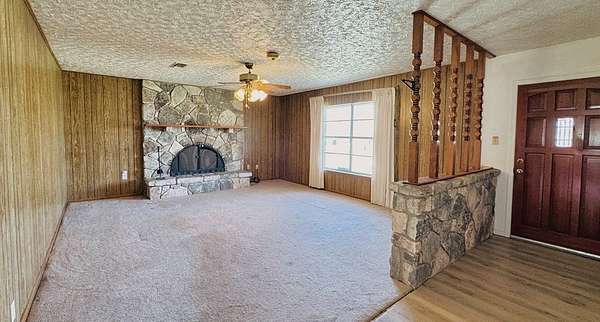 Ranch-style Hill Country stone home on 2.62 acres located on a private deeded lane just off the county road and only 1 mile from Ingram. This spacious property offers 4 bedrooms and 2 bathrooms with a functional floor plan that includes a comfortable living room with fireplace, separate dining room, and a large kitchen equipped with gas range, dishwasher, and refrigerator. The primary suite features its own fireplace and walk-in closet, while the oversized guest bathroom provides plenty of space for family or guests. Additional interior features include an in-house utility room and generous living areas. Outside you will find a detached two-car garage with workshop area, open acreage, and room for gardening, animals, or outdoor enjoyment. Enjoy the peace of country living with the convenience of nearby town amenities and NO city taxes. Ideal as a primary residence, investment opportunity, or Hill Country retreat. Make the repairs/improvements of your choice!