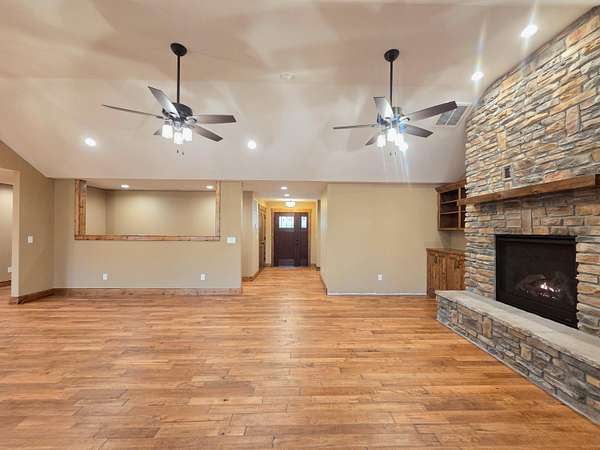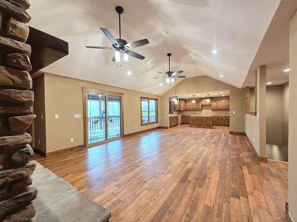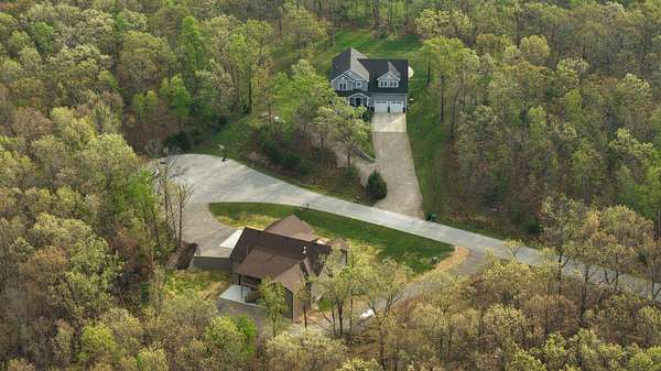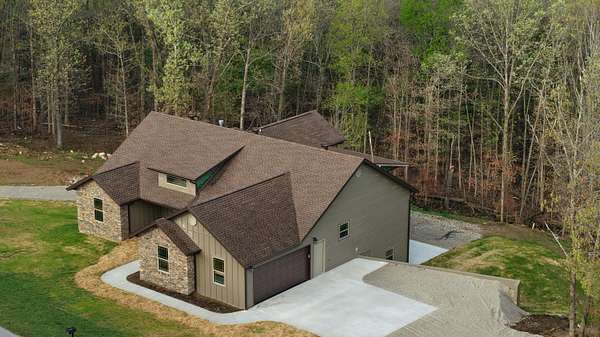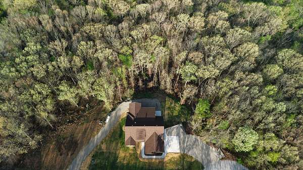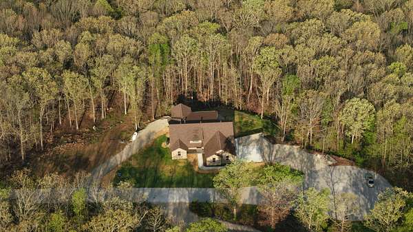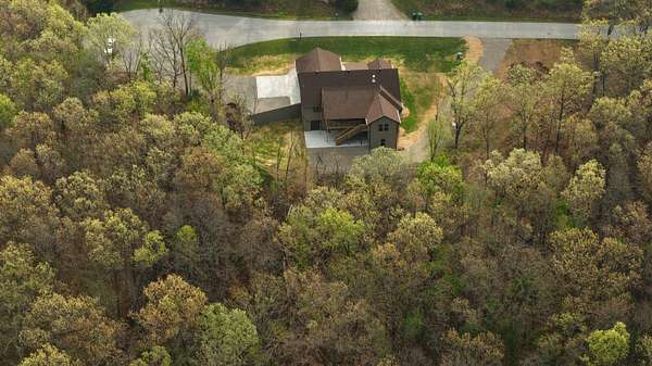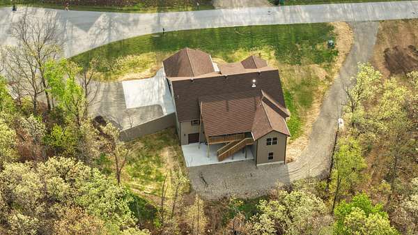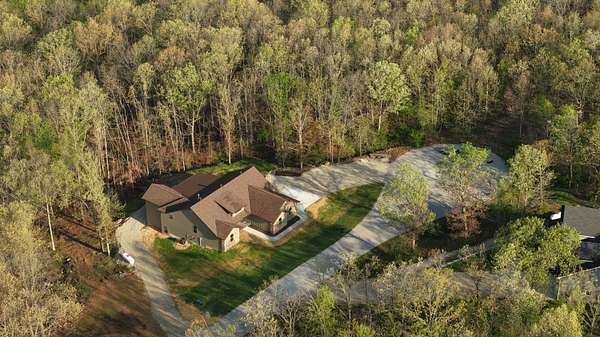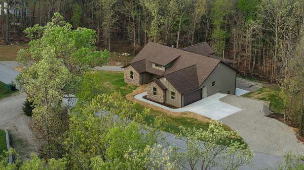 Secluded and exclusive, yet accessible and sensible, is where you'll find this exceptional, impeccable, and unforgettable brand new home! This custom designed walkout basement home sits at the end of a blacktop road on a 2.71 acre wooded lot in a very private and exclusive subdivision (Angels Camp) that's comprised of just a few homes near Northview, Missouri. Located just a few minutes from Marshfield and a short 20 minute drive down I-44 to Springfield, the location has the best of both worlds being both very private but not far away from shops and services (it's only 15 minutes from Buc-ees!). On the exterior you'll love the side entry garage, stone and hardiplank siding exterior, the forest of mature trees directly behind the house that filter the evening sunsets that you'll watch from the large covered back deck. Step inside to real hardwood floors, rich natural wood cabintery, granite countertops, a split bedroom floor plan, a primary suite with a soaker tub and separate walk in shower. The main bedroom has a HUGE walk in closet and there's a large walk in pantry off the kitchen and garage entry. A full basement that's partially finished (insulated and sheetrocked) offers lots of possibilities and could have 2 additional bedrooms and 2 living areas. It's already plumbed for a wet bar and offers an oversized John Deere room that exits on to the back patio. The back of the home is truly the highlight with a large covered deck and patio overlooking the woods at the end of the road. Hard to find this much privacy and this setting that's so accessible! Check it out soon before its gone like the Dogwood and Redbud tree blooms
