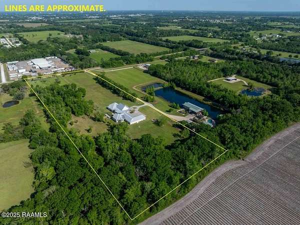 Experience an elevated lifestyle in this expansive, single-level estate: a rare fusion of sophistication, comfort, & cutting-edge technology. Set on over 12 acres just minutes from Lafayette, Louisiana, this forever home offers an extraordinary living experience. The gallery has a soaring wood accent cathedral ceiling & a complete second baking kitchen that can be seamlessly concealed during special events. The exquisite bar flows into a striking ''rock'' wall feature, leading down to a Napa Valley-inspired wine cave, complete with a custom starlit ceiling - the perfect space to sip, unwind, & indulge. The theatre experience enhances every sensory with premium seating, projection, surround sound & even the popcorn machine & candy display. Two luxurious primary suites each offer a resort-style retreat to pamper your every whim, while two additional guest bedrooms share a stylish Jack & Jill bath. A dedicated craft room provides abundant storage & inspiration for creative pursuits. The man cave features a dramatic vaulted door & an indoor shooting range: destined to be your favorite private escape. The climate-controlled 3-car garage is ready for your prized collection, in addition to a spacious 4-car garage. Step outside to a covered patio built for entertaining, complete with a full outdoor kitchen, fireplace & custom retractable screens - allowing the party to continue in comfort, year-round. Six adjoining acres of partially wooded & cleared land backs up to Bayou Queue De Tortue with approximately 200' of additional N Fieldspan Road frontage. Adjoining 2,793 sqft retreat house with ponds, pool, pool house, outdoor kitchen & workshop on 10.62 acres is also available. Or you can have it ALL with a total of 22.92 acres! has MORE photos of this fabulous estate!