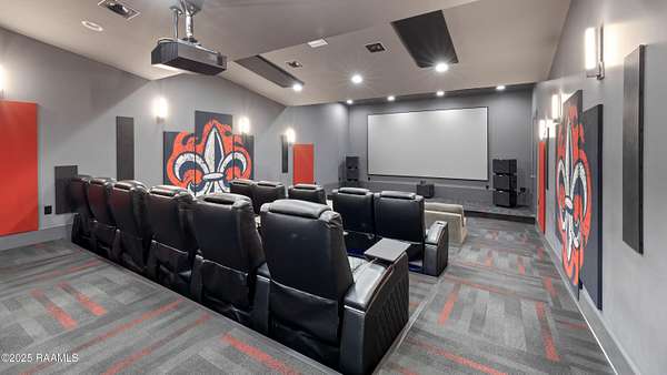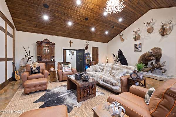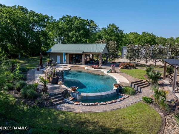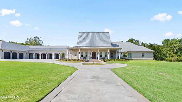 Experience an elevated lifestyle in this expansive, single-level estate-a rare blend of sophistication, comfort, and cutting-edge technology. Set on over 22 acres just minutes from Lafayette, this forever home and its adjoining retreat house offer an exceptional living experience. The main home features a stunning gallery with soaring wood-accented cathedral ceilings and a hidden second baking kitchen, perfect for entertaining. A dramatic ''rock'' wall leads to a Napa Valley-inspired wine cave with a custom starlit ceiling-an ideal space to sip, unwind, and indulge. The immersive theatre includes premium seating, projection, surround sound, a popcorn machine, and a candy display. Two luxurious primary suites offer resort-style retreats, while two guest bedrooms share a stylish Jack & Jill bath. A dedicated craft room provides ample space and inspiration. The man cave boasts a vault door and an indoor shooting range-your private escape. A climate-controlled 3-car garage complements a spacious 4-car garage. Outdoors, enjoy a covered patio with a full kitchen, fireplace, and retractable screens for year-round entertaining. On the adjoining 10-acre parcel, the retreat house overlooks two serene ponds and a saltwater pool. A sweeping deck, exposed beams, metal ceiling accents, and billiards area create a warm, welcoming vibe. Solar panels and elevator access add modern convenience. The lower-level houses a professional-grade gym, while outside, a covered outdoor kitchen, grotto-style pool, hot tub, and fully equipped pool house enhance the experience. A workshop and fenced playground complete the estate. The additional 6 acres of partially wooded and cleared land backing up to Bayou Queue De Tortue with approx. 200' more N Fieldspan Road frontage. You can have ALL right here in the heart of Acadiana! has MORE photos of this fabulous estate!