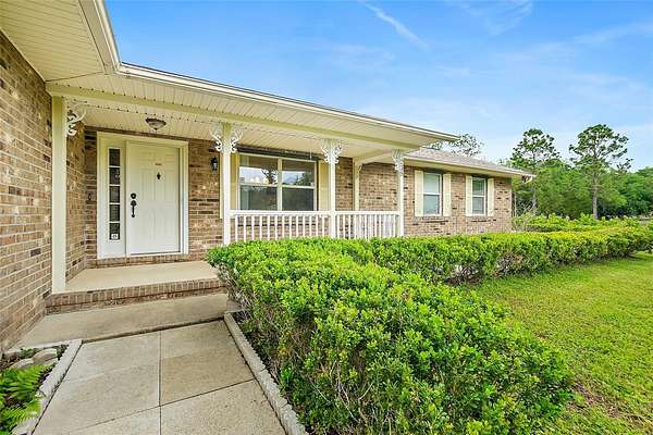 Escape to where the whisper of wind replaces the noise of the city! Your are only a 12 mile drive to Bunnell for shopping and amenities. Picture yourself sipping your coffee/tea in the large screened in lanai with visions of pastureland and horses grazing. What better way to start your day or wind down your evening? This charming 3 bedroom, 2 bath brick home sits on 5 acres on a country road and it is fenced and cross fenced and ready for your horses, cows or other farm animals or pets that you may have. Even if you do not have animals, it is the perfect spot to enjoy a relaxed country lifestyle. As you pull into the gate your path to your home is a concrete private driveway that leads to your garage or the Quonset hut. the Quanset hut is a large building that can be used for parking your car, camper, recreational vehicles or simply turn it into storage or a shop. The living room features a wood burning brick fireplace with french doors on either side that opens onto the screened lanai. The kitchen has sliding glass doors that also open onto the lanai and provides a beautiful view while cooking. The primary suite features a walk in closet and the primary bathroom has a large garden tub with separate shower. The guest bedrooms have built in closets and the guest bathroom has a tub/shower combination. The 2 car garage has sliding screen doors for year round enjoyment. If you like to fish, Pellicer Creek park is a 10 minute drive as is Bull Creek for some of the best Speckle Perch and Croppy fishing in the state. Pellicer Creek has walking trails and they both offer great kayaking, canoeing or boating adventures.