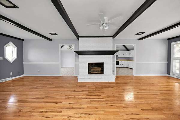CASH OR CONVENTIONAL LOAN ONLY - Perched atop a grassy knoll overlooking a generous 2.5-acre (+/-) lot is where you will find this beautiful brick ranch with a basement exuding exquisite style and charm. The home starts off in the spacious yet cozy living room showcasing a glowing hardwood floor and highlighted by an ambient fireplace enhanced by the painted brick hearth while the black accents from the decorative mantle and exposed beams add a tasteful pop... and topping off this area are the louvered shutters coupled with double French doors that lead to the covered patio. Flowing from the living room is a large, open kitchen fantastic for hosting and entertaining as the vaulted ceiling and strategically placed skylight filters in superb natural light and fosters that extra-roomy feel. The kitchen is equipped with a plethora of elegant, white cabinetry including a handy pantry cabinet and bountiful counter space that wraps into a lovely breakfast bar. Rounding out the kitchen is a sizable dining area complete with a magnificent stationary window providing a picture-perfect view of the property. The first-floor features a lavish primary suite sporting a gorgeous hardwood floor and furnished with an enormous walk-in closet while having its own private access to the rear patio plus an extravagant ensuite bath. This luxurious bathroom showcases stylish his/her vanities (hers having a delightful dressing table), a soothing floating tile floor, and a relaxing walk-in shower caressed by ornate tile and having a euphoric rainfall shower head. Nestled down the hall are 2 more generously-sized bedrooms accompanied by another full bath highlighted by a fashionable vanity, a handy linen closet, and discreet laundry room. The tour continues down to the basement that is teeming with potential as its immense space and extra rooms offer countless options to have rec/entertainment areas, additional bedrooms, an office, and much more! You also have another full bathroom to service this area and in the heart of the basement is a snuggly den companioned by a nifty wet bar. Down here is also where you will find the 2-car drive-in garage. Outside... you will love having the partially covered rear patio which is a perfect spot to host and entertain or to simply relax as you look out into the quaint backyard. Speaking of which... the backyard offers a fantastic space to add more amenities while the entire yard provides plenty of open air for the kids and pets to play. Call The Lancaster Agency for the grand tour of this grand home today! *NOTE: WE DO NOT PAY COMMISSION ON SELLER PAID CLOSING COSTS AND PRE-PAID ITEMS - LISITNG BROKER: 2.25% SELLING BROKER: 2.25%*